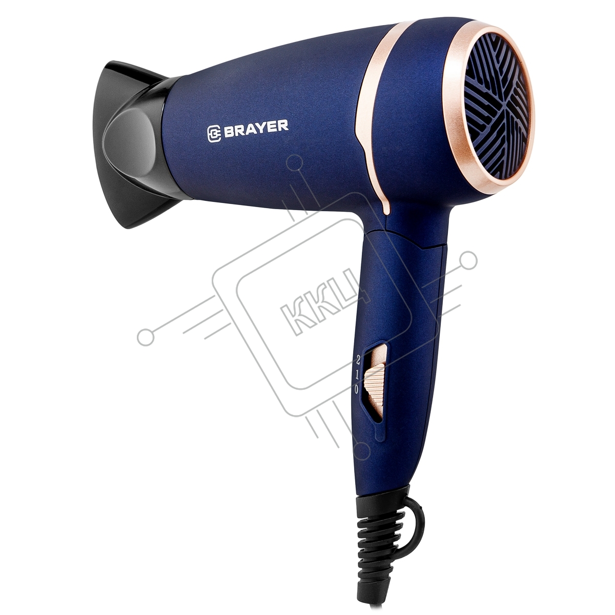 Фен BRAYER BR3025 синий/золотистый, 1400 Вт, компактный