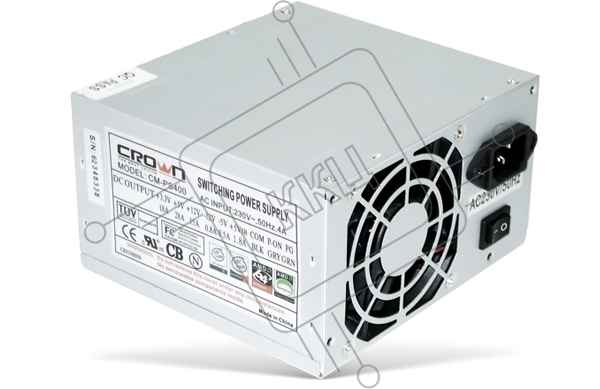 Блок питания CROWN CM-PS400W (20+4in, 80mm FAN, SATA*2, PATA(big Molex)*4, FDD*1, 4+4pin, Lines 1x12V OEM)