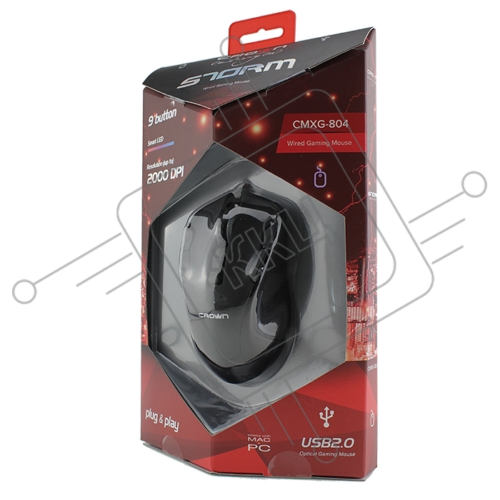 Мышь проводная Crown Gaming CMXG-804 черный, 2000 dpi, USB, кнопки - 9