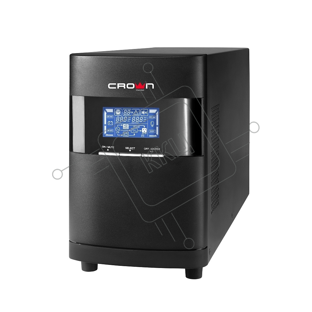 Источник бесперебойного питания CROWN On-Line CMUOA-350-1K EURO 1000VA/900W, корпус металл, TOWER, АКБ 3*12V/7AH, PF-0.9, AVR 110-300V, порт RJ-11/45+USB/RS-232, EPO, розетки 2*EURO, входной кабель 2 м, вентилятор охлаждения, автомат, слот для SNMP, порт