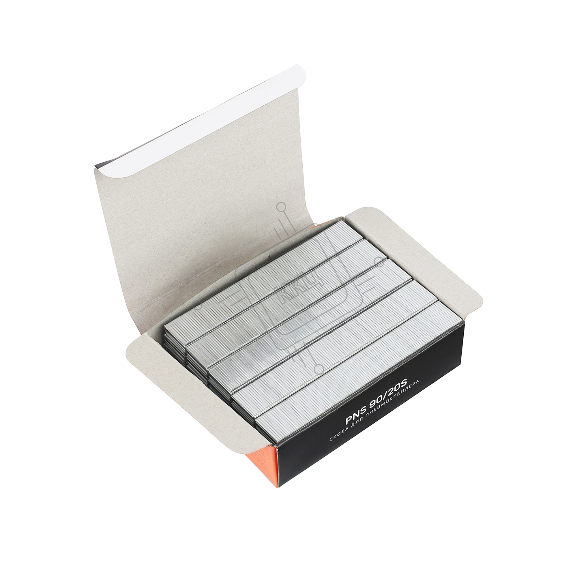 Скоба PNS 90/20S для пневмостеплера ANG 210R, узкая, тип 90 (18GA), длина 20 мм, ширина 5,7 мм, сечение 1,25х1мм, сталь, 5000 шт.