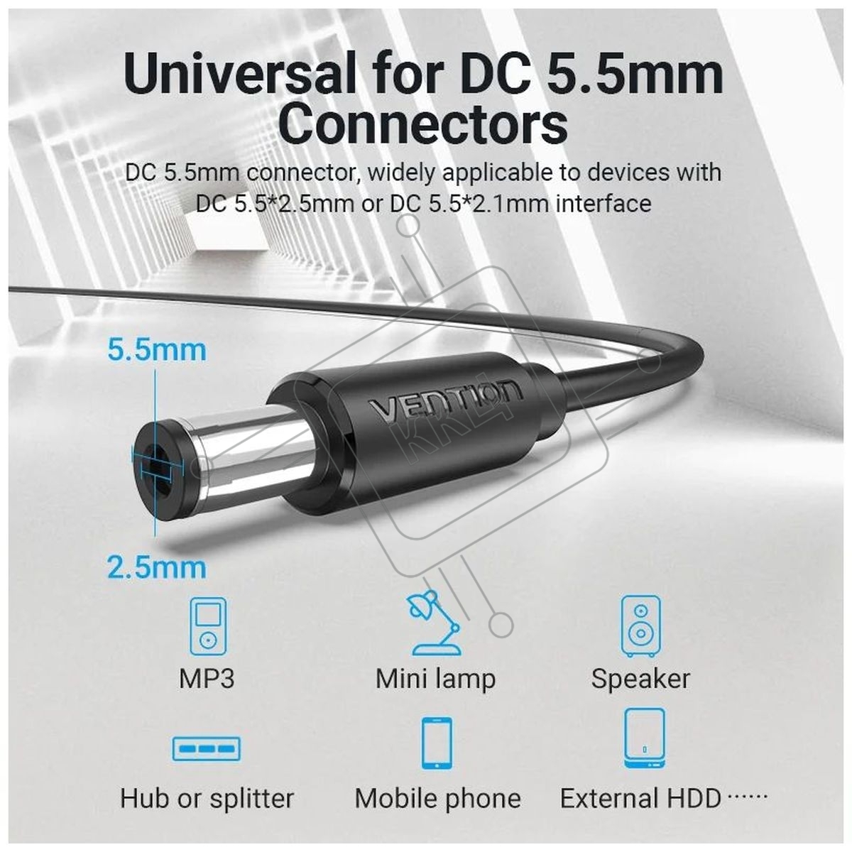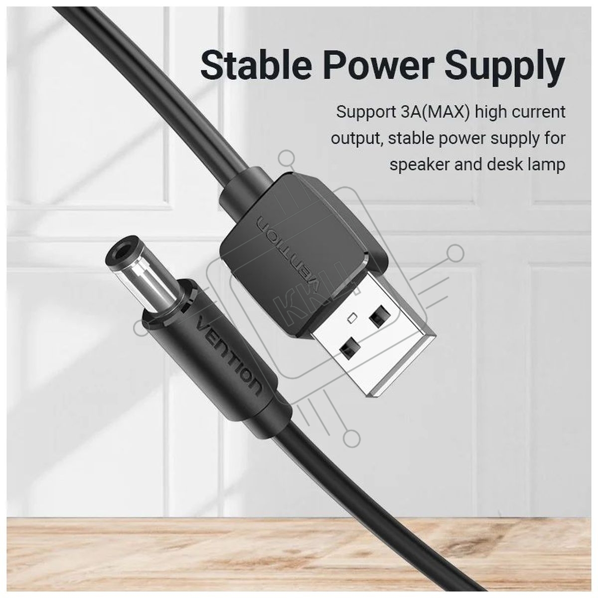 Кабель Vention USB AM/DC-jack 5.5мм M - 1.5м Чёрный