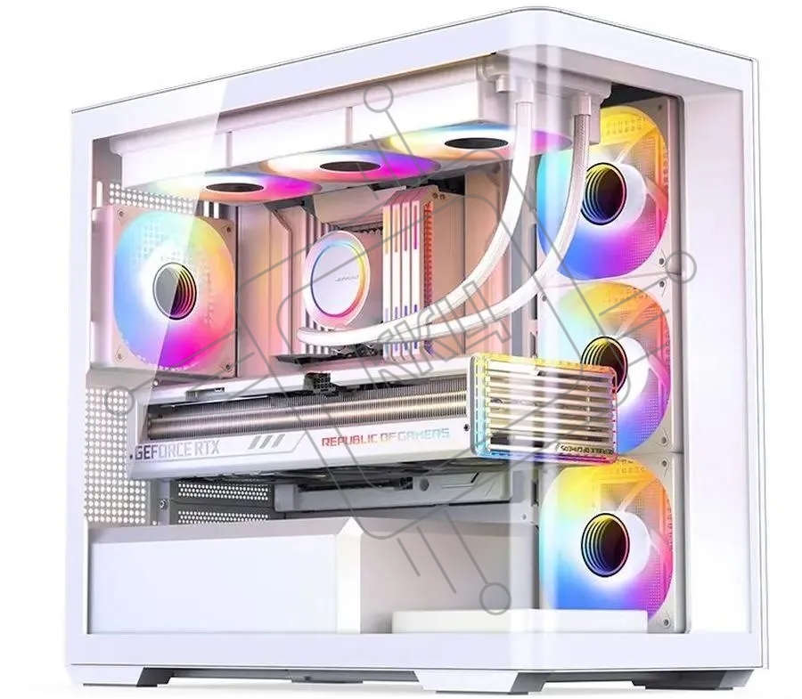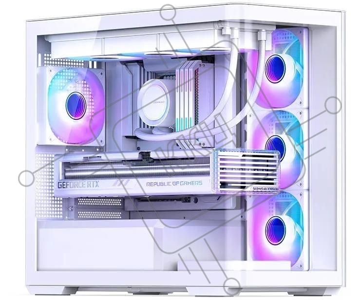 Корпус без блока питания JONSBO D300, Mini-Tower, TG, no fan, 2xUSB-A 3.2 + 1xUSB-C 3.2, mATX, mITX White