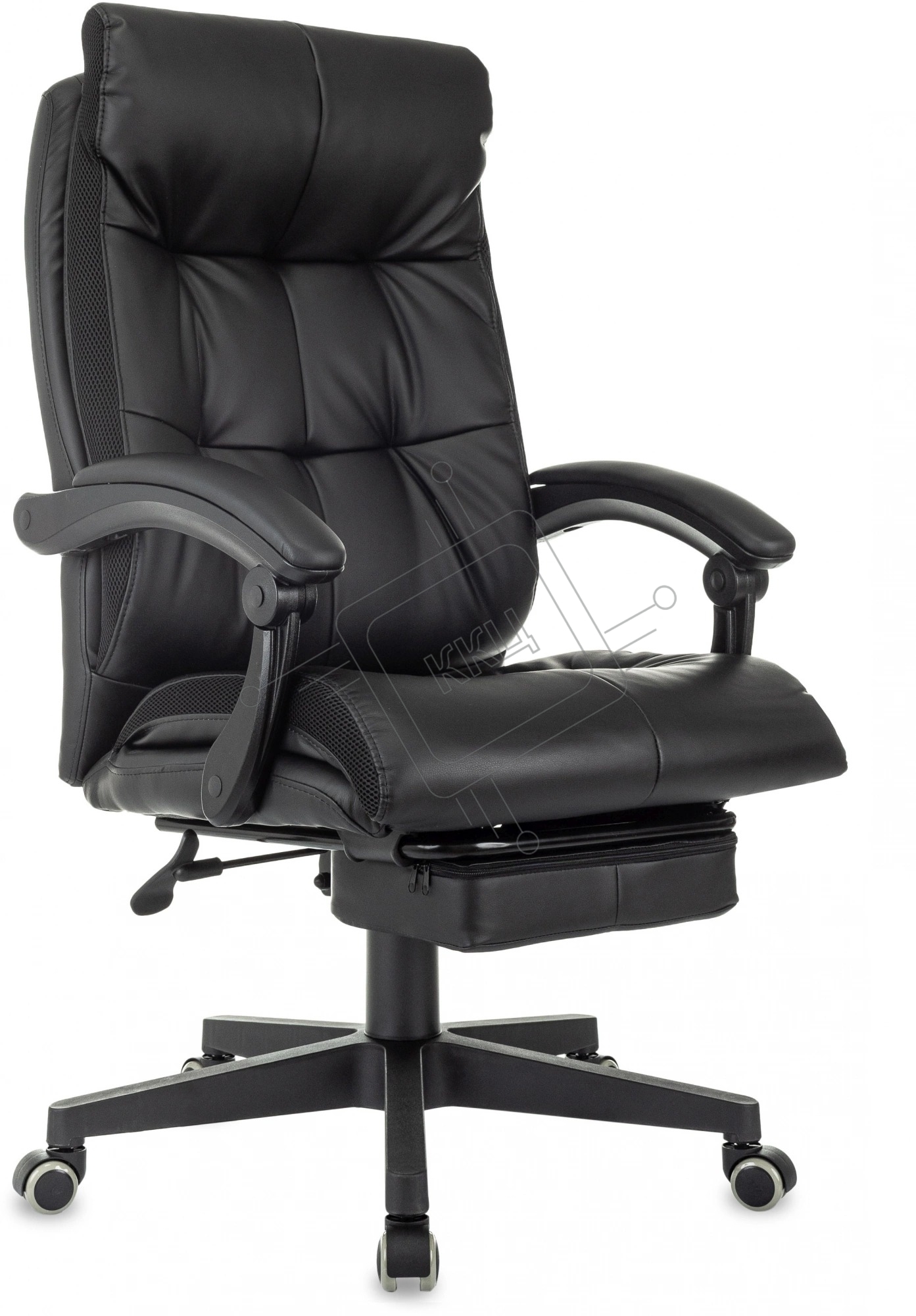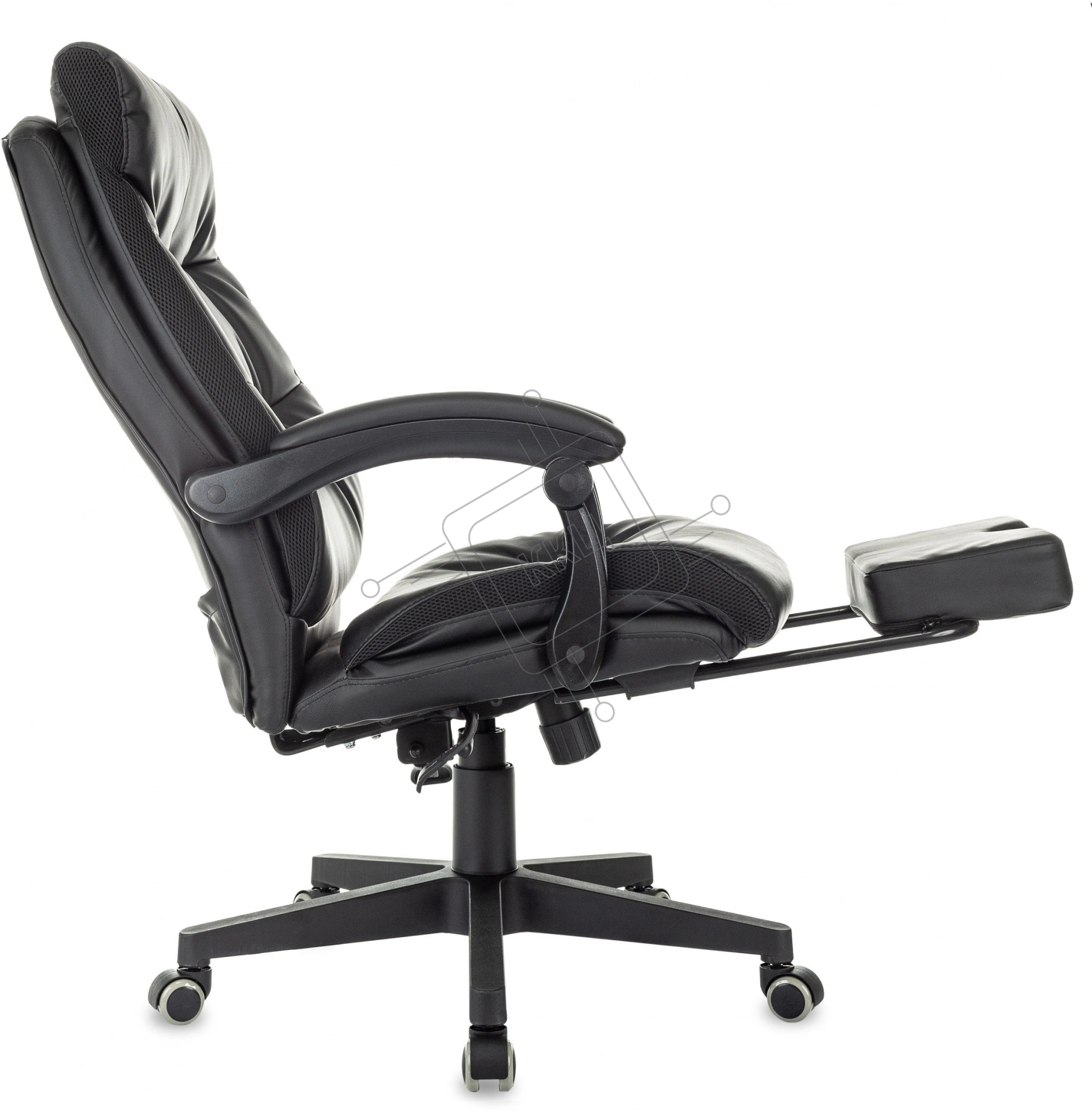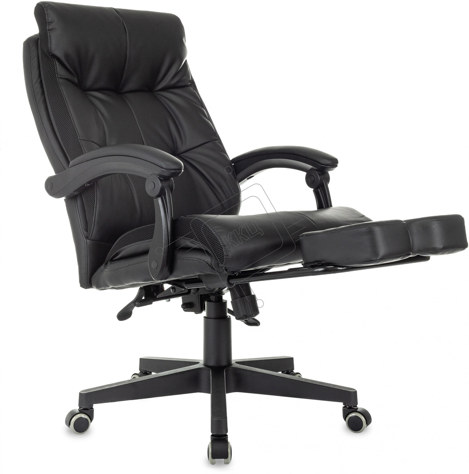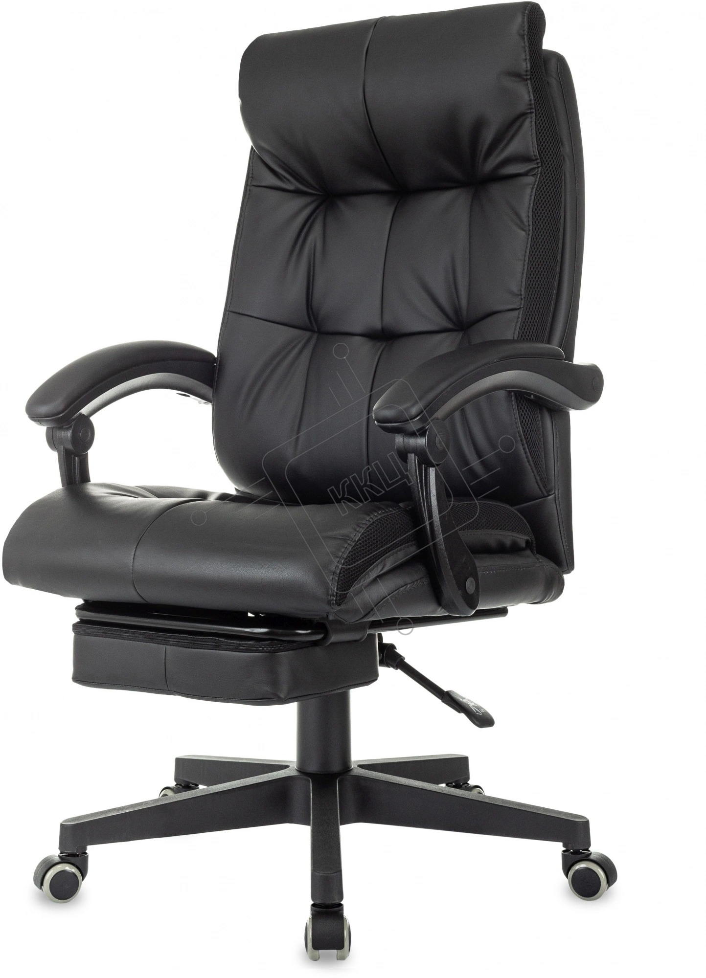 Кресло руководителя Бюрократ CH-824MSG-BF черный, эко.кожа/ткань, крестов. пластик, подст. для ног