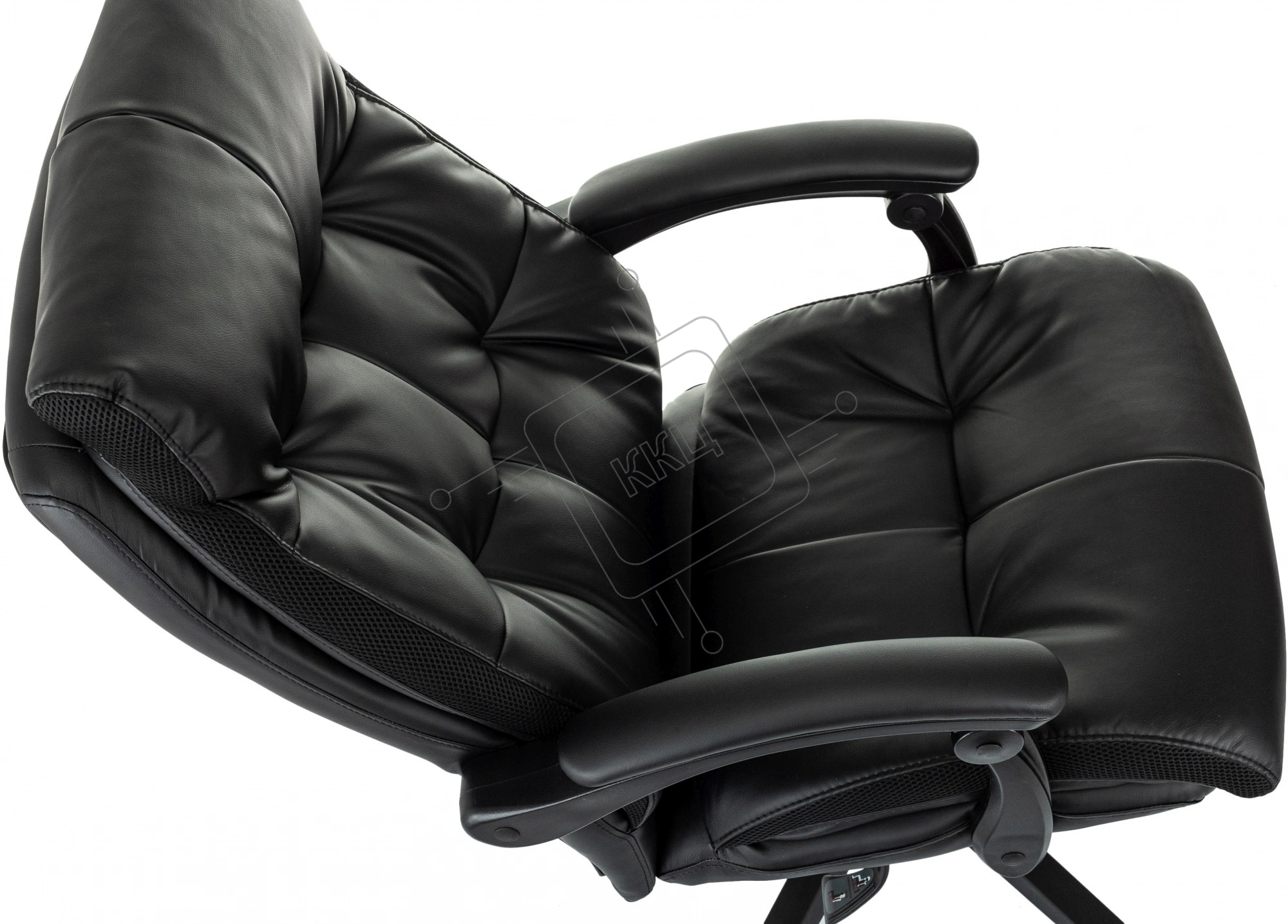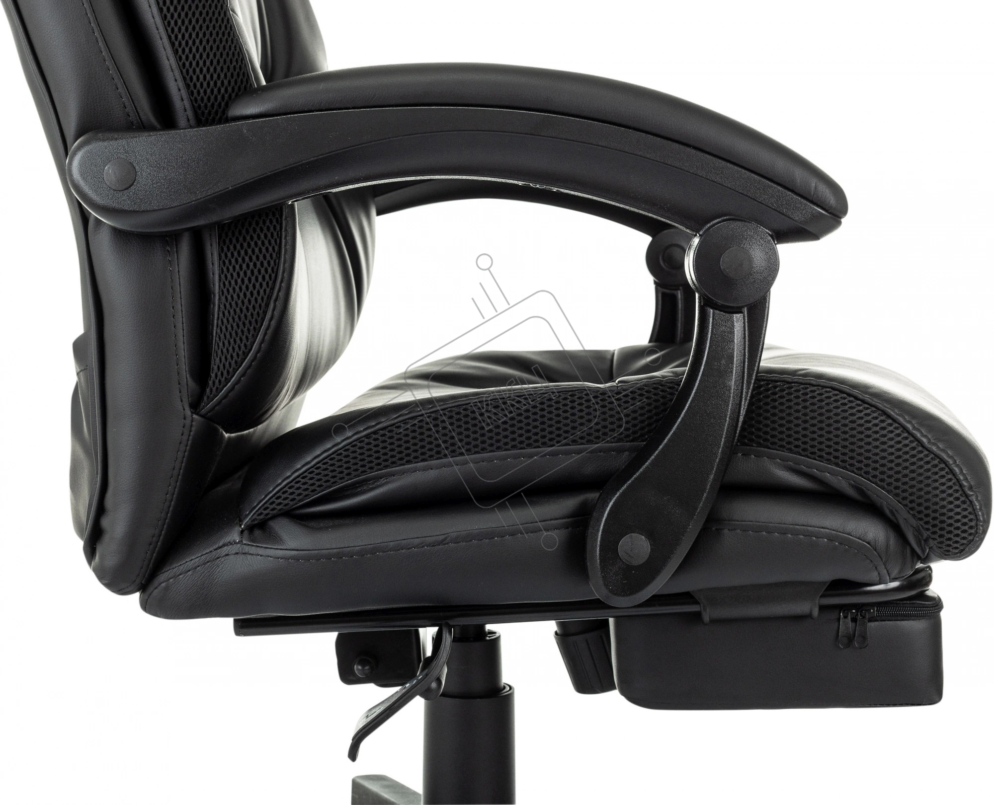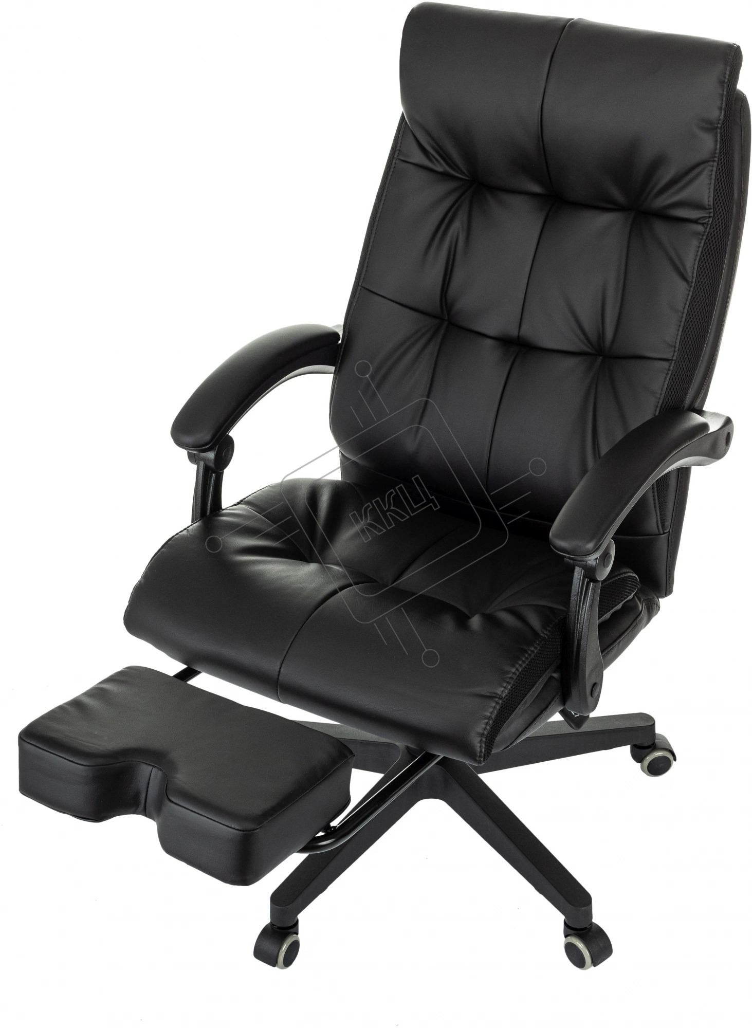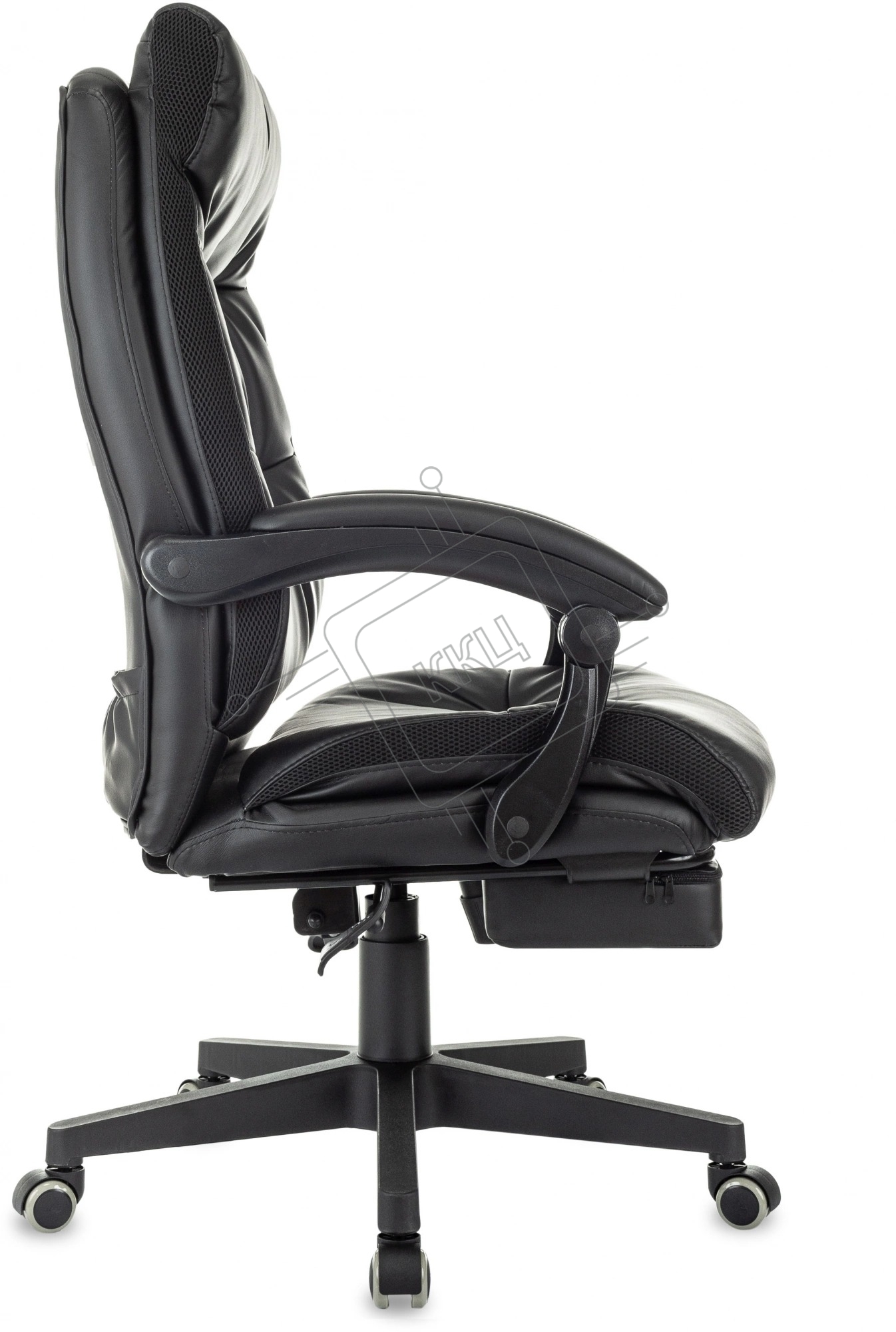 Кресло руководителя Бюрократ CH-824MSG-BF черный, эко.кожа/ткань, крестов. пластик, подст. для ног