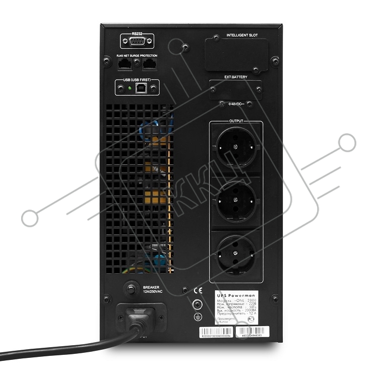 Источник бесперебойного питания PowerMan Online 2000VA черный (Online-Double conversion/LCD Display/USB/Software/RJ11/45,RS-232)