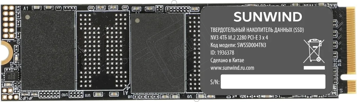 Накопитель SSD SunWind PCIe 3.0 x4 4TB SWSSD004TN3 NV3 M.2 2280