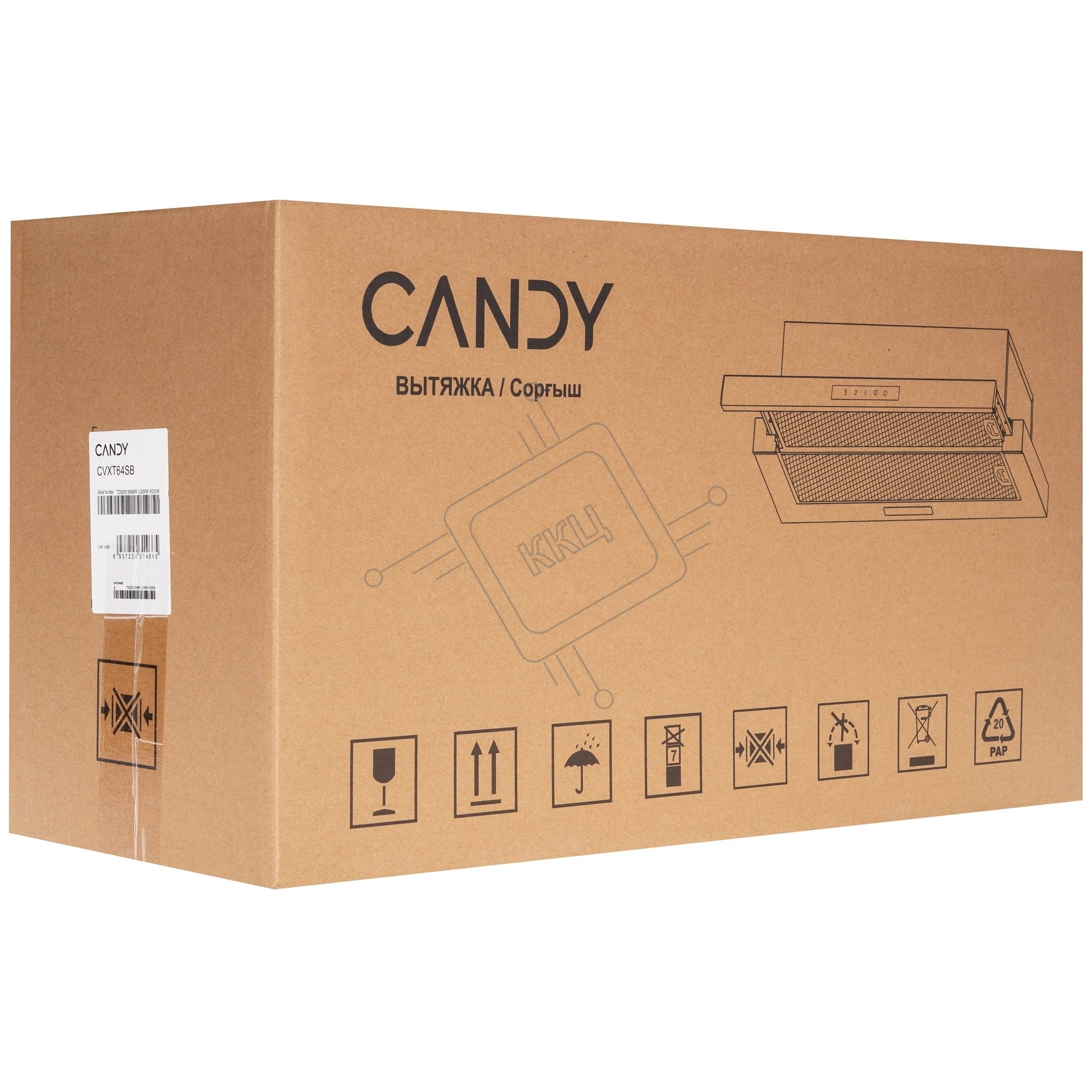 Вытяжка встраиваемая Candy CVXT64SB чёрный, 60 см, 600 м³/ч, 46 дБ