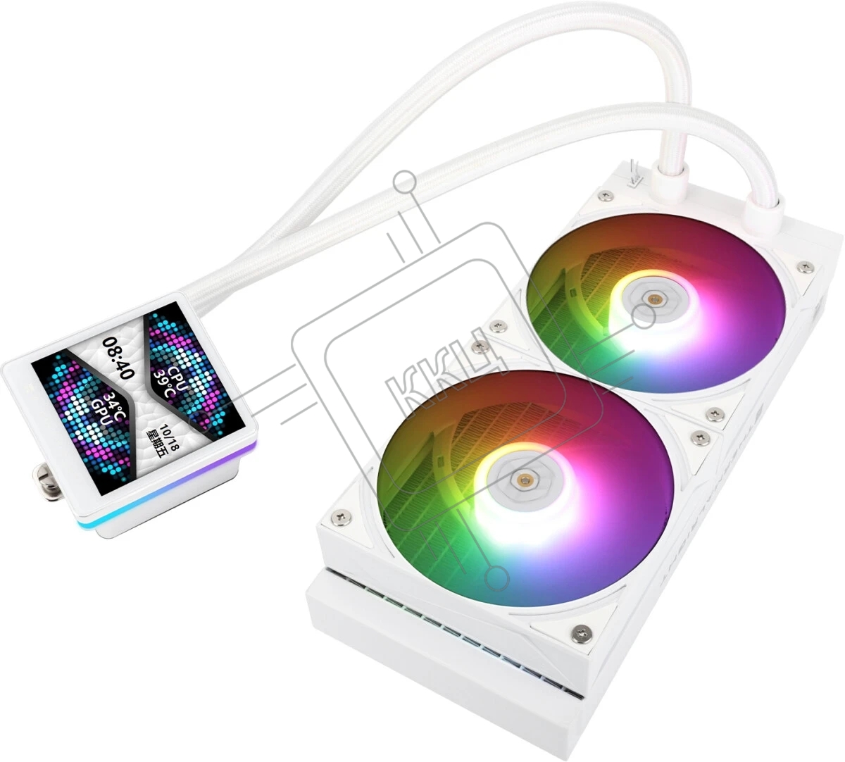 Водяное охлаждение для процессора Thermalright Grand Vision 240 (240mm, LED, White, ARGB/Fans: 2x120mm, 80.45CFM, 29.4dBA, 2150RPM/Pump height 72.5mm, 6400RPM, Rad thickness 27mm/S: 1700, 1200, 1851, 115X, 2011, 2066, AM5, AM4)