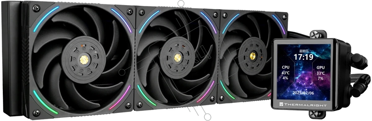 Система жидкостного охлаждения Thermalright Frozen Vision 360 V2 (360мм, LED, Black, ARGB/Fans: 3x120мм, 69CFM, 27dBA, 2150RPM/Pump height 60мм, 23dBA, 3000RPM, Rad thickness 27мм/S: 1700, 1200, 1851, 115X, 2011, 2066, AM5, AM4)