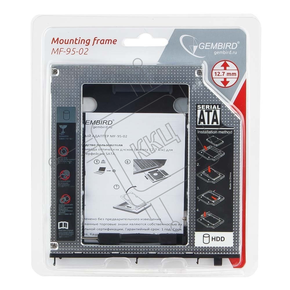Контейнер для HDD Gembird MF-95-02 Низкопрофильный адаптер для 2.5-дюймового накопителя в отсек 5.25 дюйма, 12 мм