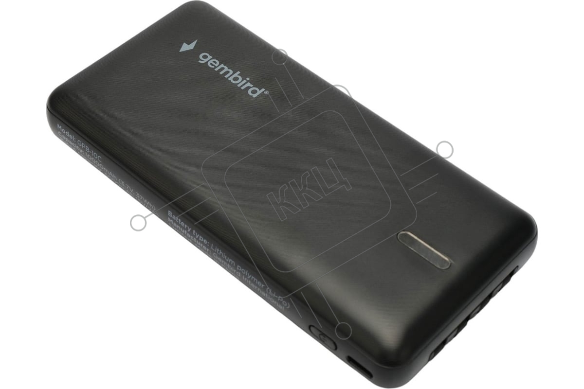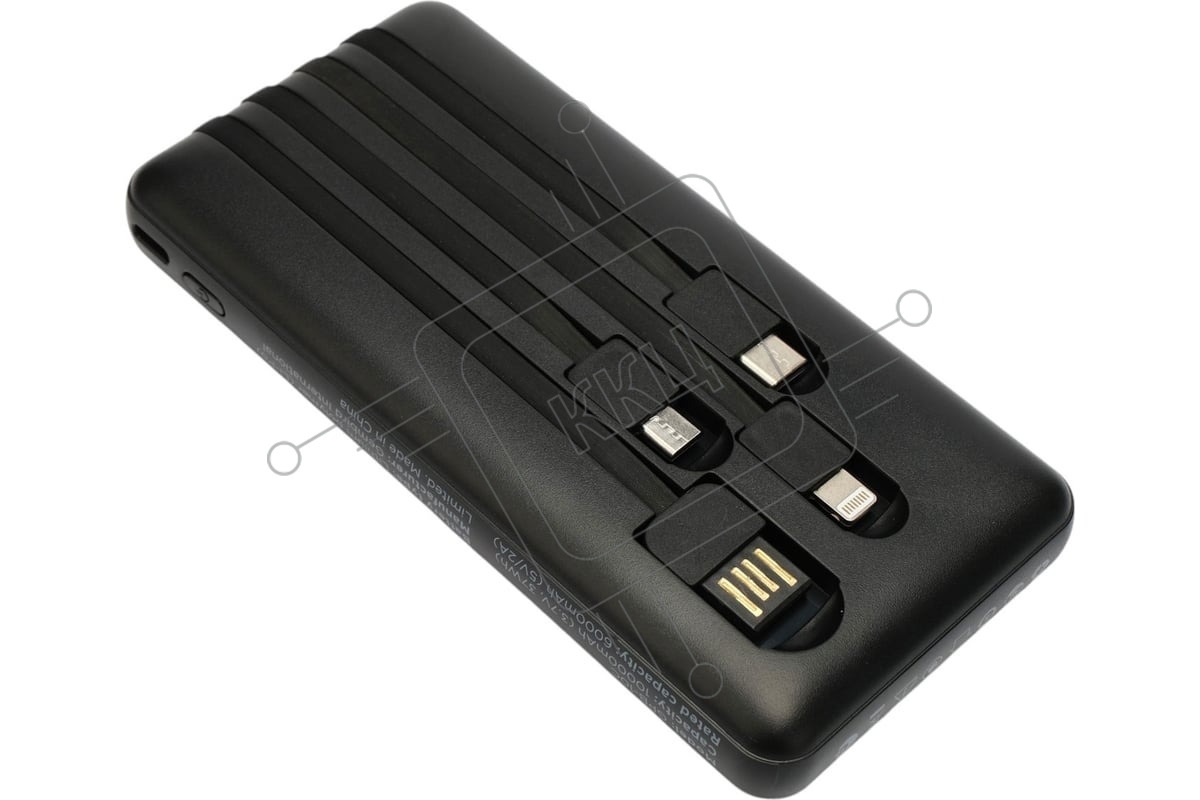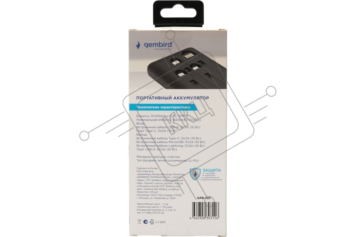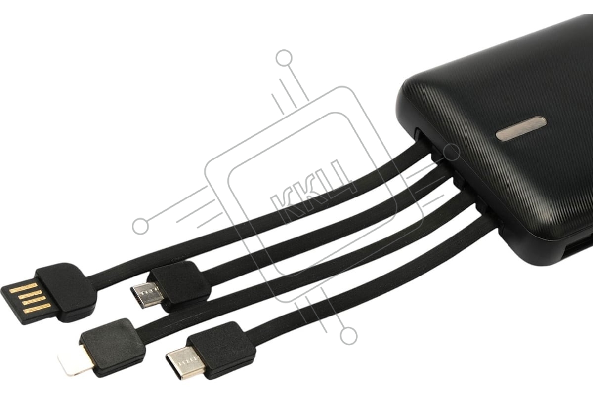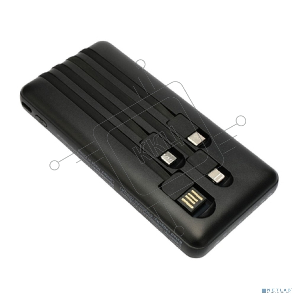Портативный аккумулятор Gembird GPB-10C, 10000мАч, 2A, 4 встроенных кабеля, черный