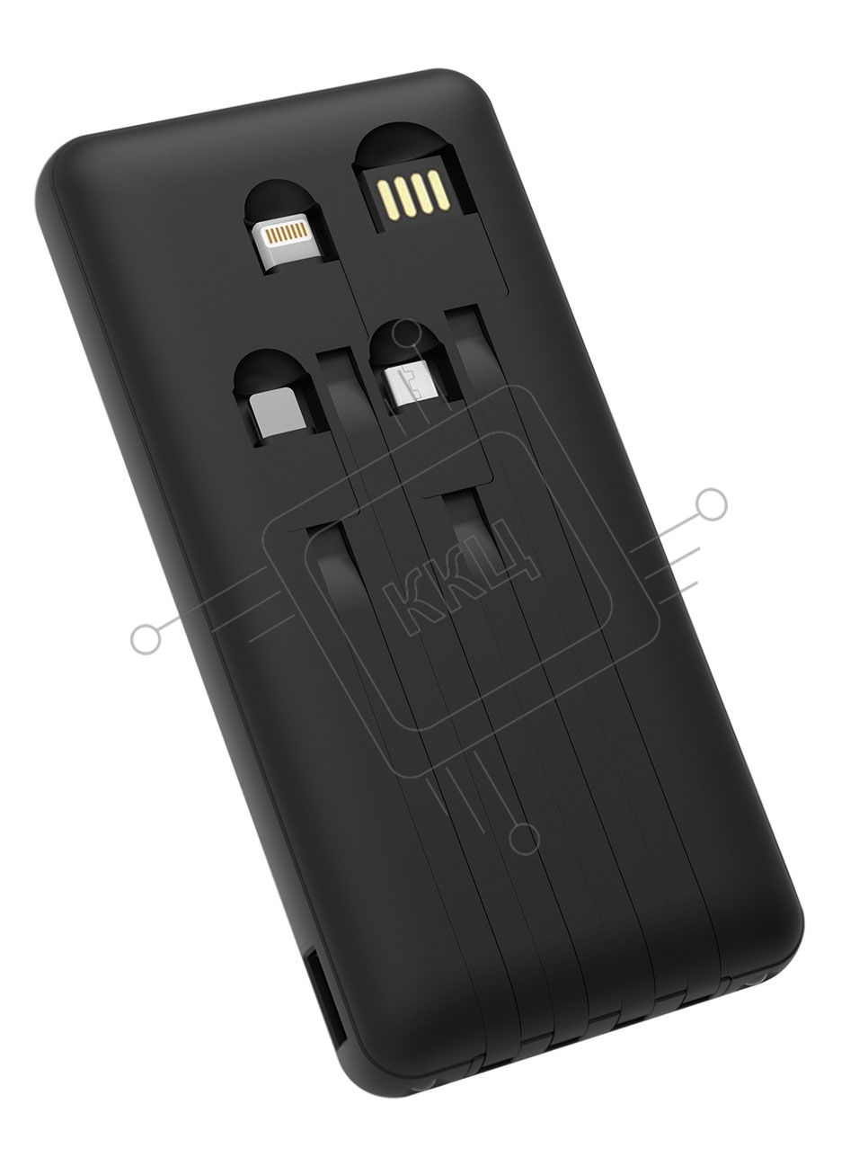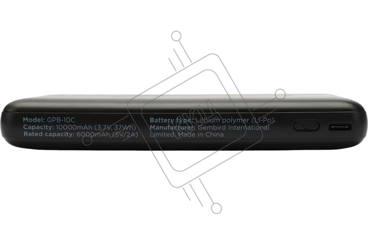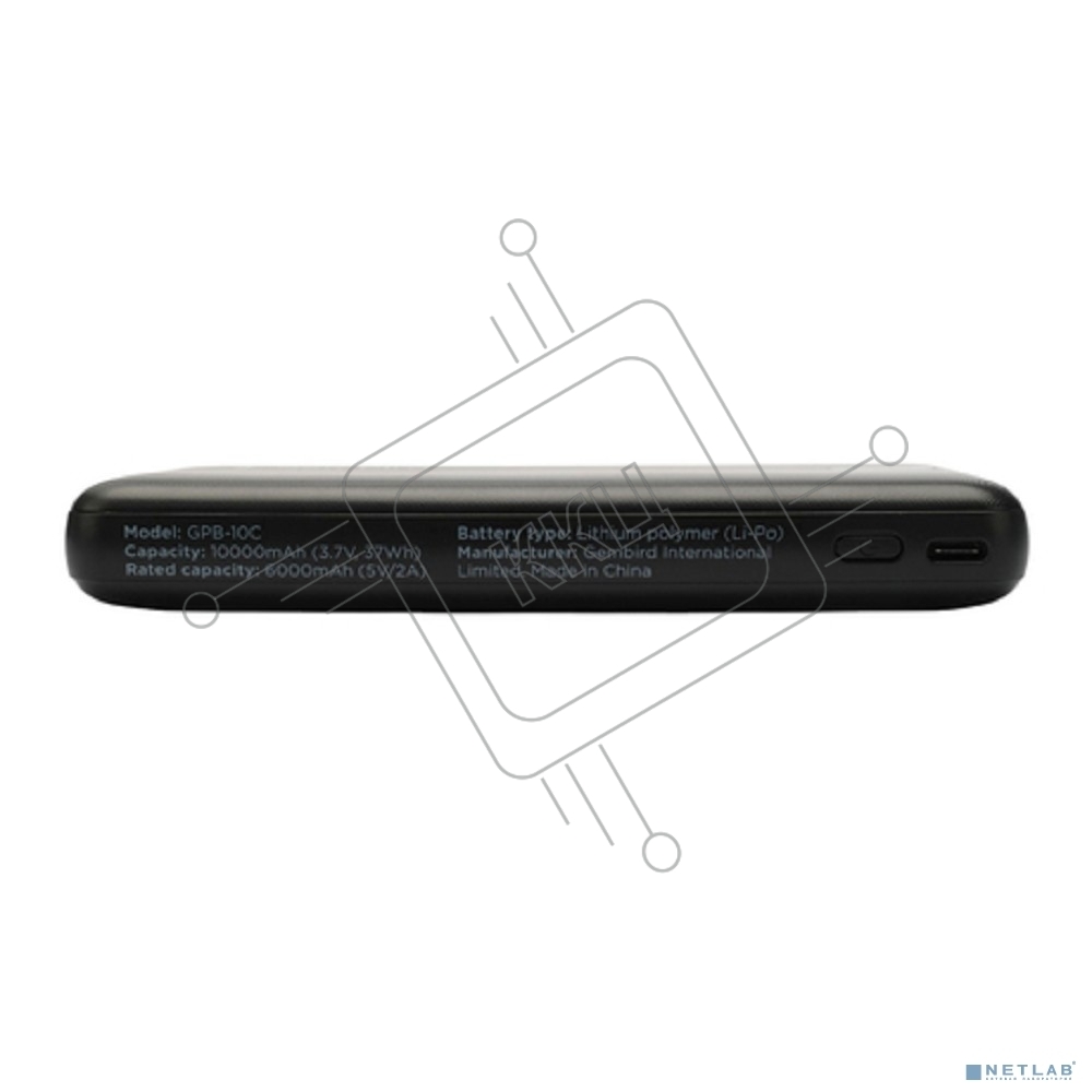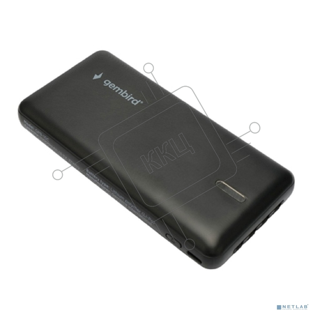 Портативный аккумулятор Gembird GPB-10C, 10000мАч, 2A, 4 встроенных кабеля, черный