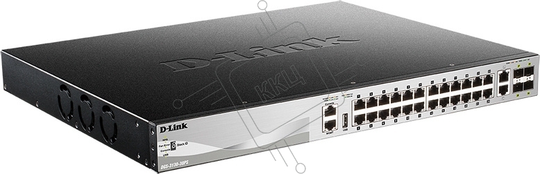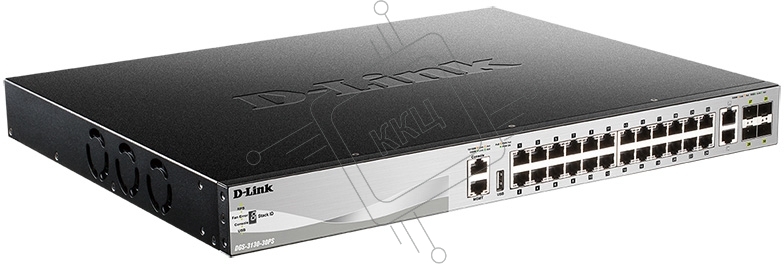 Управляемый стекируемый коммутатор D-Link DGS-3130-30PS/B1A PROJ 3 уровня с 24 портами 10/100/1000Base-T, 2 портами 10Gbase-T и 4 портами 10Gbase-X SFP+ (24 порта с поддержкой PoE (30 Вт)