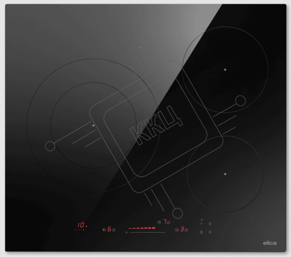 Индукционная варочная панель Elica PRF0199860, 60 см, слайдерное управление, 3 конфорки, таймер, режим подогрева, пауза, защита от детей, черный