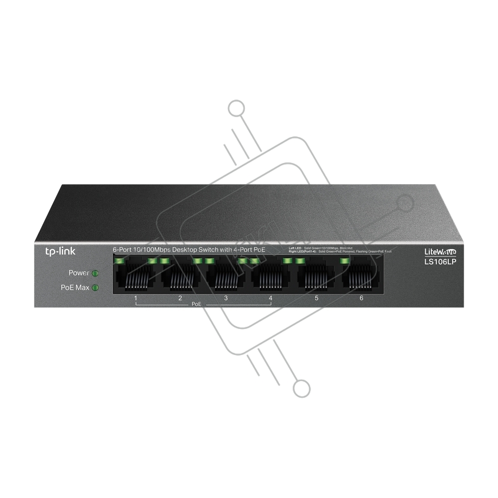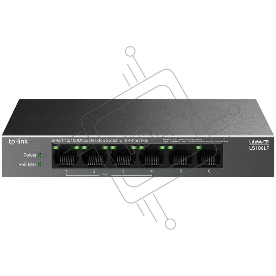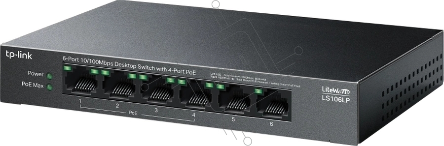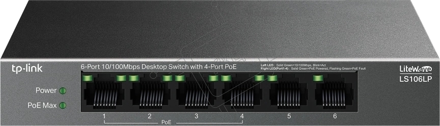 Коммутатор настольный TP-Link LS106LP с 6 портами 10/100 Мбит/с (4 порта PoE)