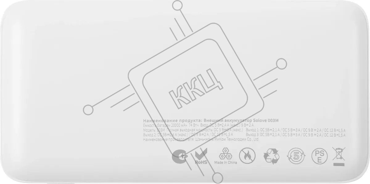 Мобильный аккумулятор Solove 003M 20000mAh QC3.0 18W 3A 2xUSB-A/USB-C белый (003M WHITE RUS)