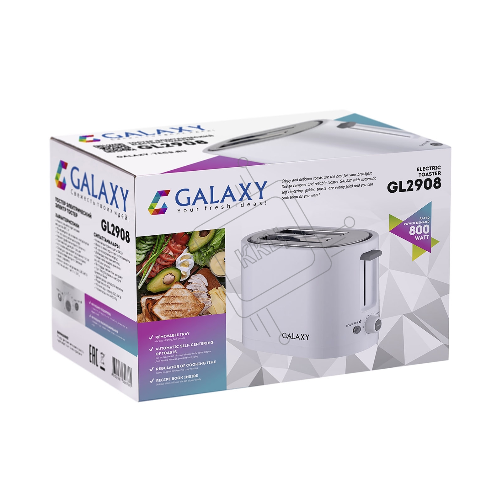 Тостер Galaxy Line GL 2908, белый, пластик, 800 Вт
