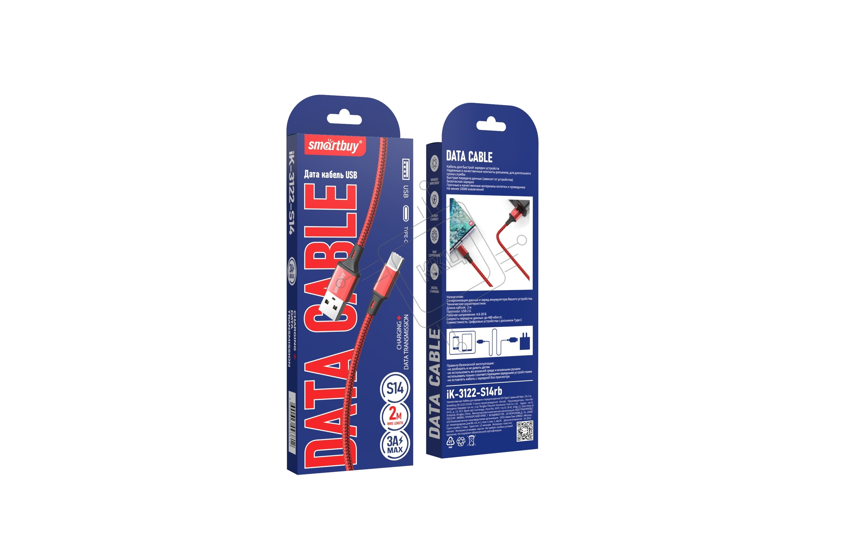 Кабель SMARTBUY (iK-3122-S14rb) S14 Type C красный/черный, 3 А, 2 м