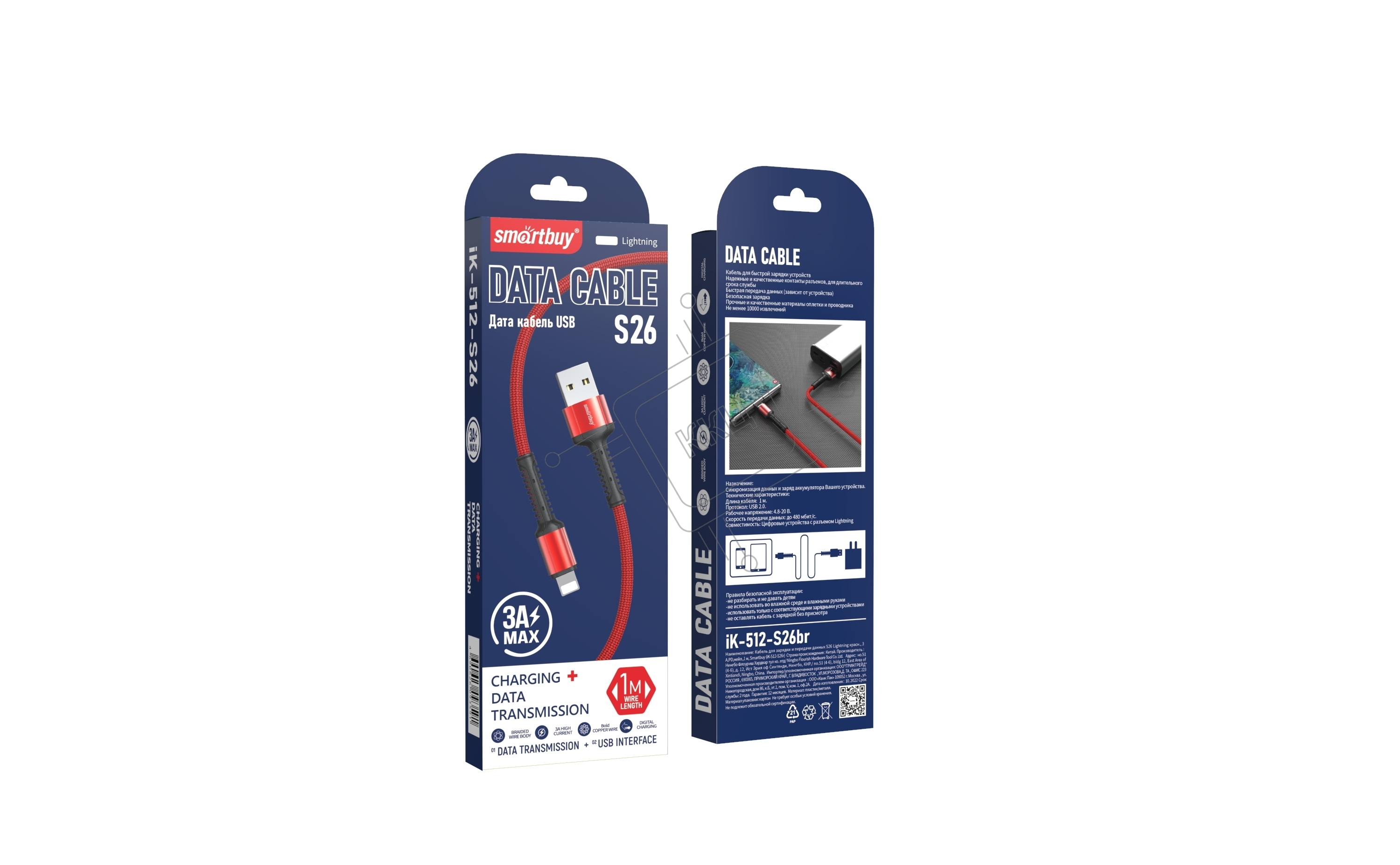 Кабель SMARTBUY (iK-512-S26r) S26 Lightning красн., 3 А,PD,нейл.,1 м
