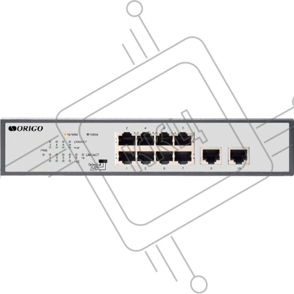 Неуправляемый PoE-коммутатор ORIGO Unmanaged Switch 8x1000Base-T PoE, 2x1000Base-T, PoE Budget 120W, Long-range PoE up to 250m, 19" w/brackets