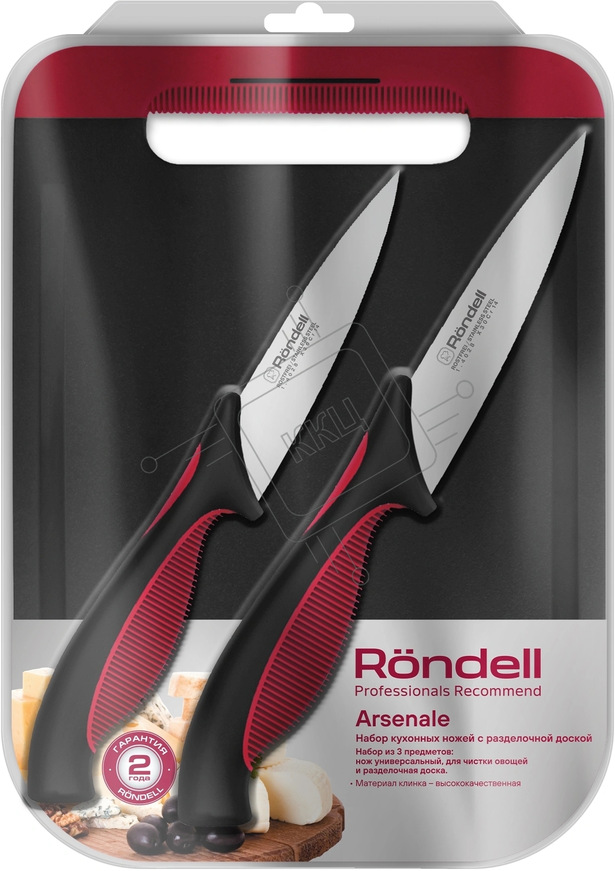 Набор ножей кухон. Rondell Arsenale RD-1975 компл.: 3 предм. разд. дос. черный/красный блистер