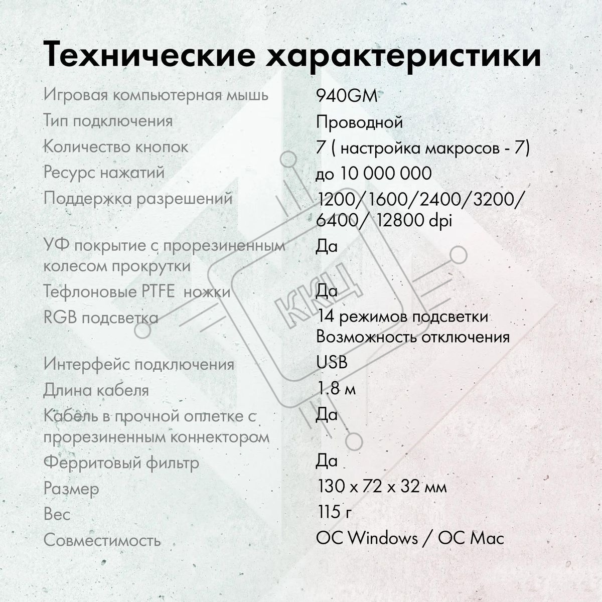 Мышь проводная GMNG 940GM черный, 12800 dpi, USB, кнопки - 7