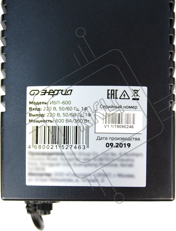 Источник бесперебойного питания ЭНЕРГИЯ 600, входное напряжение 165-275В