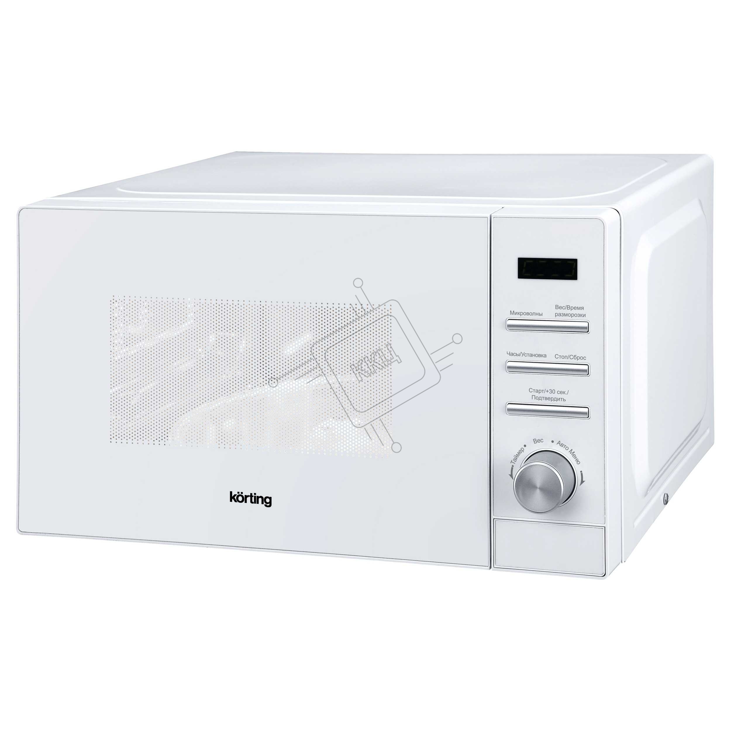 Микроволновая печь Korting KMO 820 GW / панель: белое стекло, кнопки и поворотный регулятор -хром, электронное управление, LED дисплей, объем печи: 20 л, 8 автоматических программ, функции разморозки по весу и по времени, таймер, (ВхШхГ), мм: 259*400*346