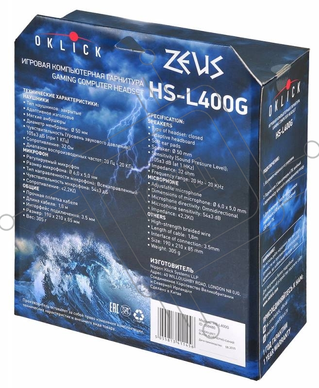 Наушники с микрофоном Oklick ZEUS HS-L400G черно-синие 1.8м мониторы оголовье (NO-3000 LED)