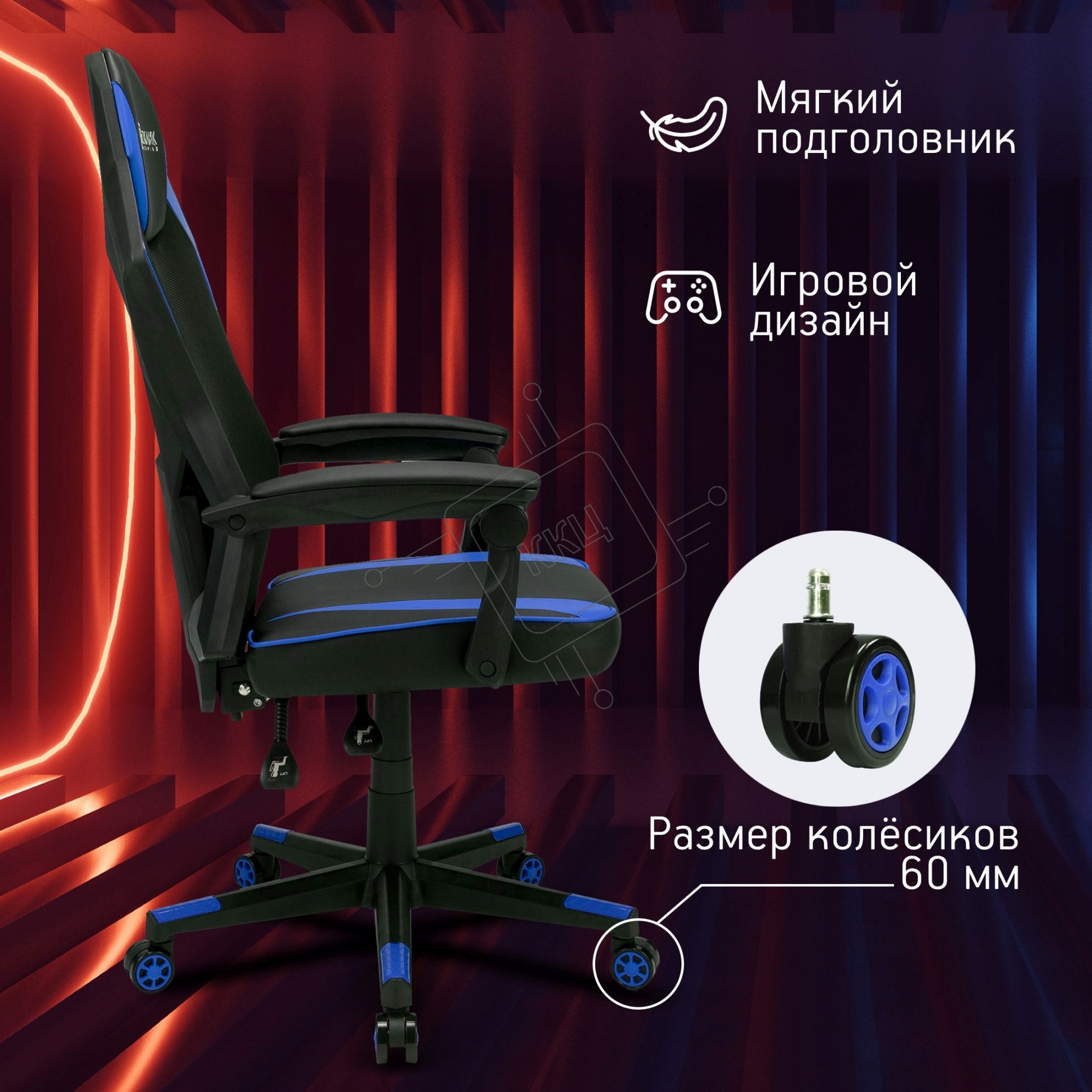 Кресло игровое Оклик 121G черный/синий сиденье черный/синий искусст.кожа/сетка с подголов. крестов. пластик черный