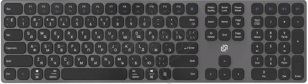 Клавиатура Oklick K867W (2002130) беспроводная, USB, Bluetooth/Радиоканал, серый/черный