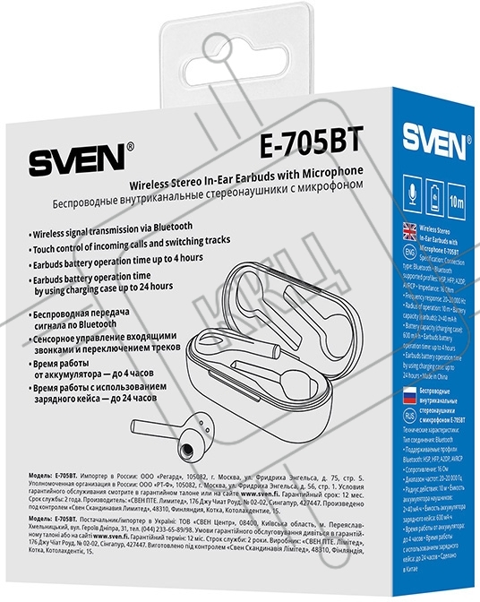 Беспроводные внутриканальные стереонаушники с микрофоном SVEN E-705BT, черный матовый (Bluetooth, TWS, магнитный зарядный кейс) Беспроводные внутриканальные стереонаушники с микрофоном SVEN E-705BT, черный матовый (Bluetooth, TWS, магнитный зарядный кейс)