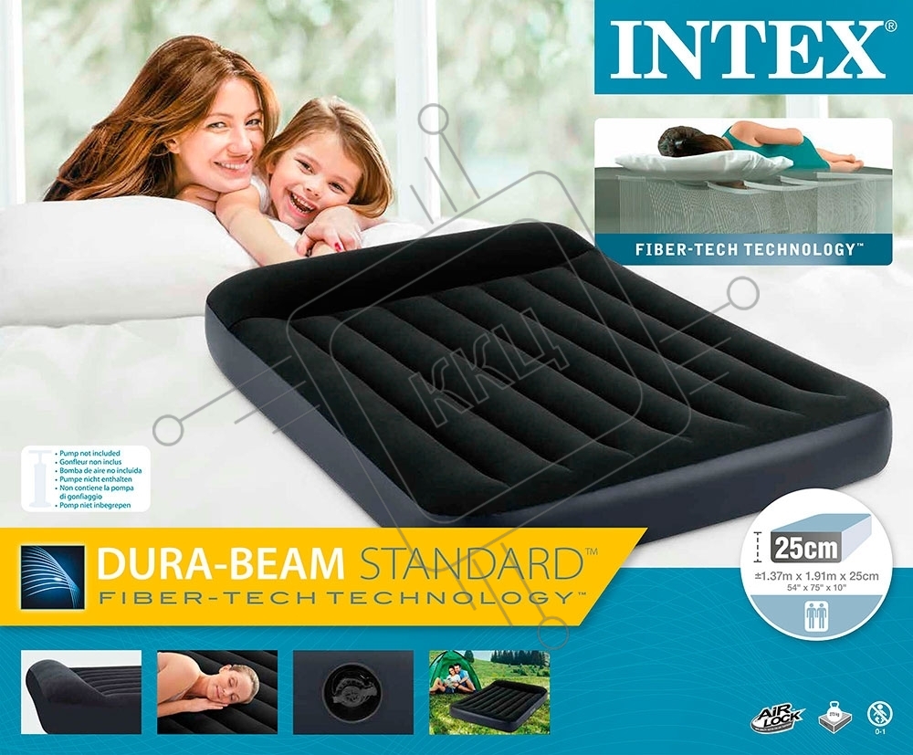 Надувной матрас 64142, Intex, 137х191х25см с подголовником, до 272кг, уп.3