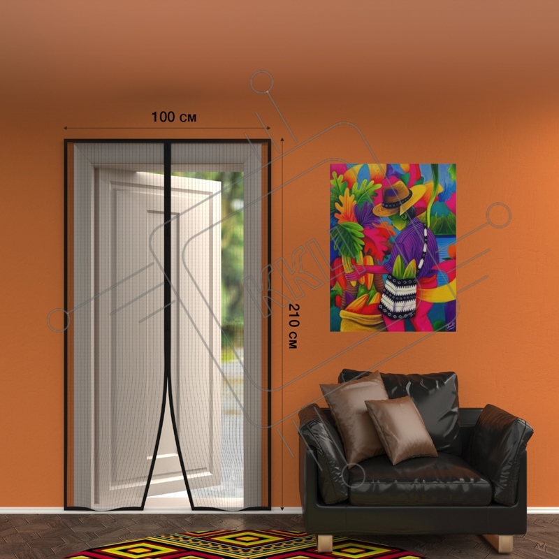 Дверная антимоскитная сетка 210х100см, с магнитами по всей длине, черная ЧЕТЫРЕ СЕЗОНА
