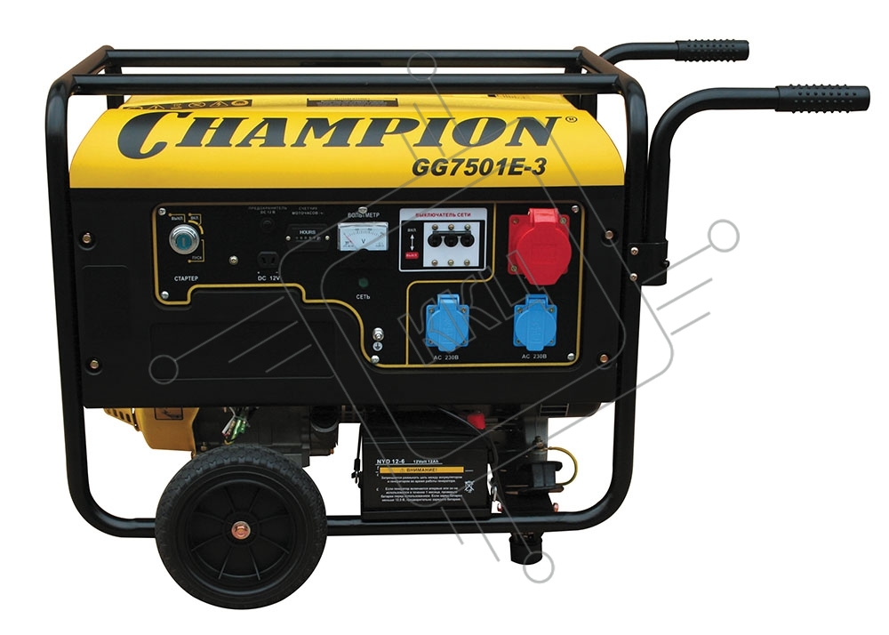 Бензоэлектростанция CHAMPION GG7501E-3 380В 7.5кВт 25л 87кг 2.5л/ч 12V эл.старт