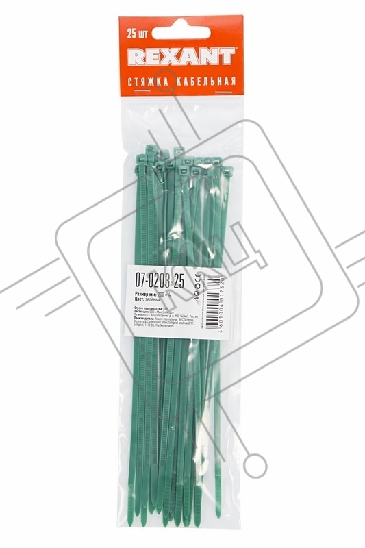 Хомут-стяжкa нeйлонoвая Rexant 200x3,6 мм, зеленая, упаковка 25 шт.
