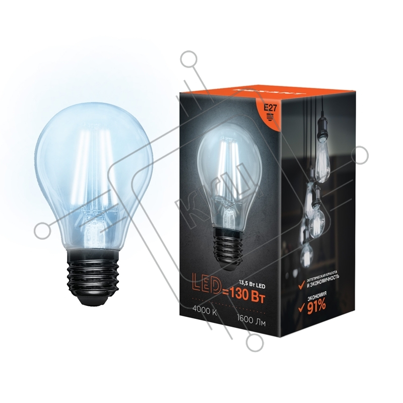 Лампа светодиодная филаментная Rexant Груша A60 13.5 Вт 1600 Лм 4000K E27 прозрачная колба