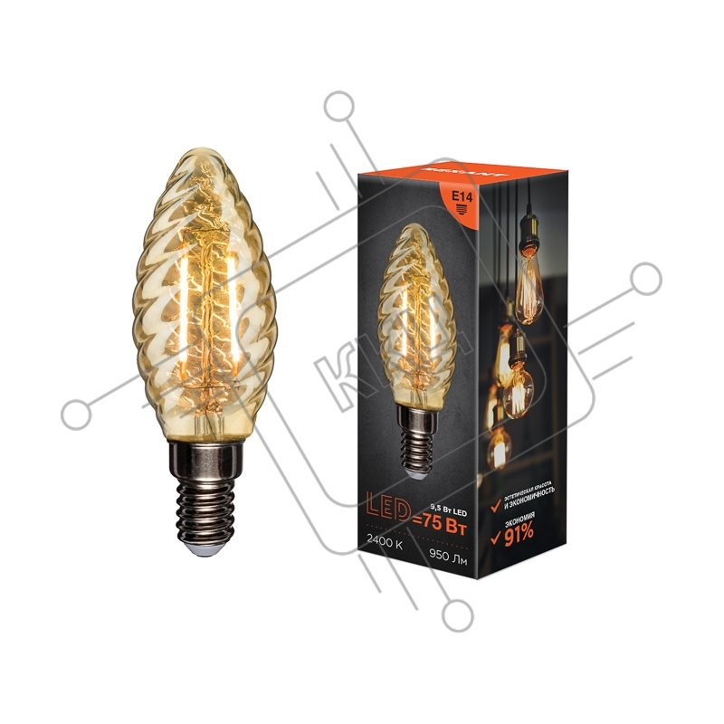 Лампа светодиодная филаментная REXANT Витая свеча LCW35 9.5 Вт 950 Лм 2400K E14 золотистая колба