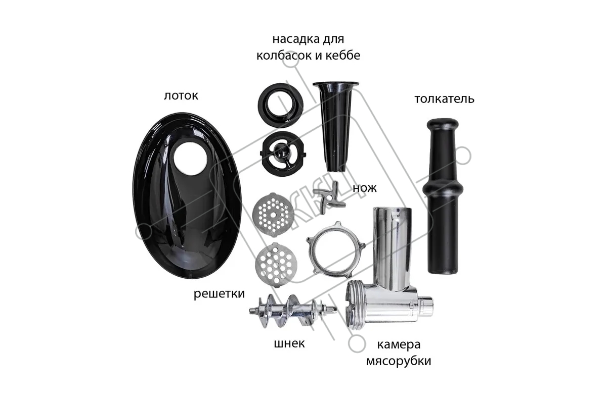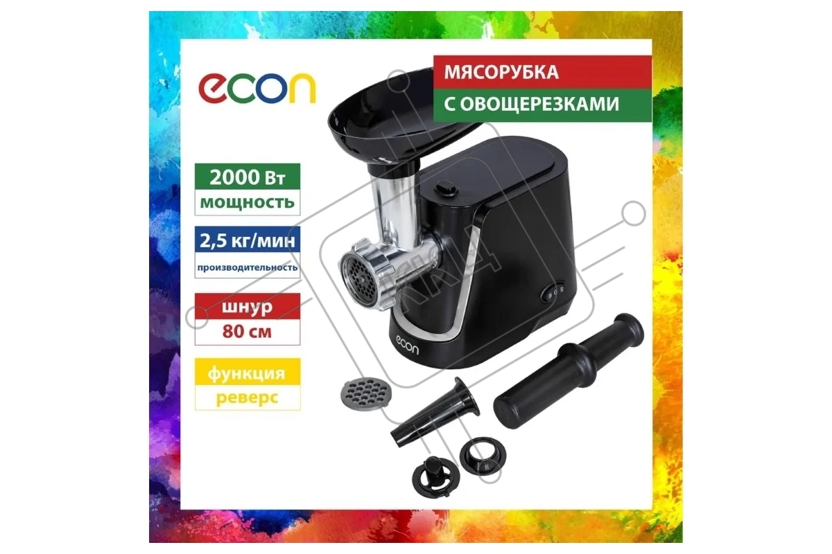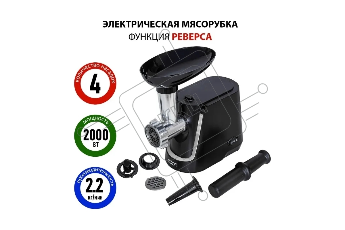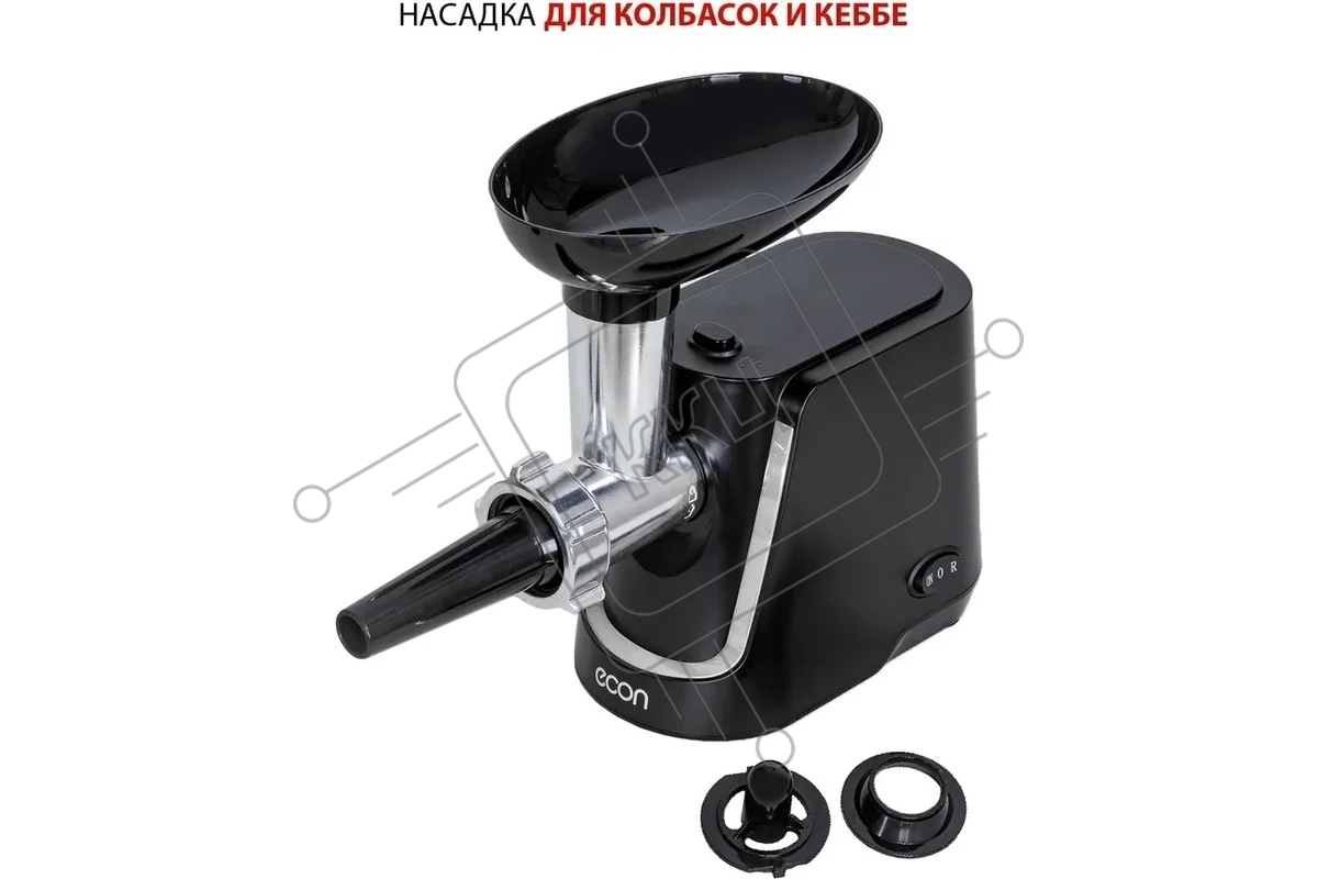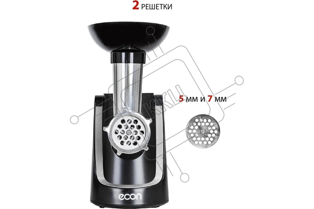 Мясорубка Econ ECO-1060MG, Макс. мощность 2000 Вт, Производительность 2,2 Кг/мин, Функция - реверс. Пластиковый лоток, 1 скорость, Нож из высококачественной стали, Защита от перегрузки двигателя, В комплекте 2 решетки 7/5 мм, Насадки для приготовления Кол