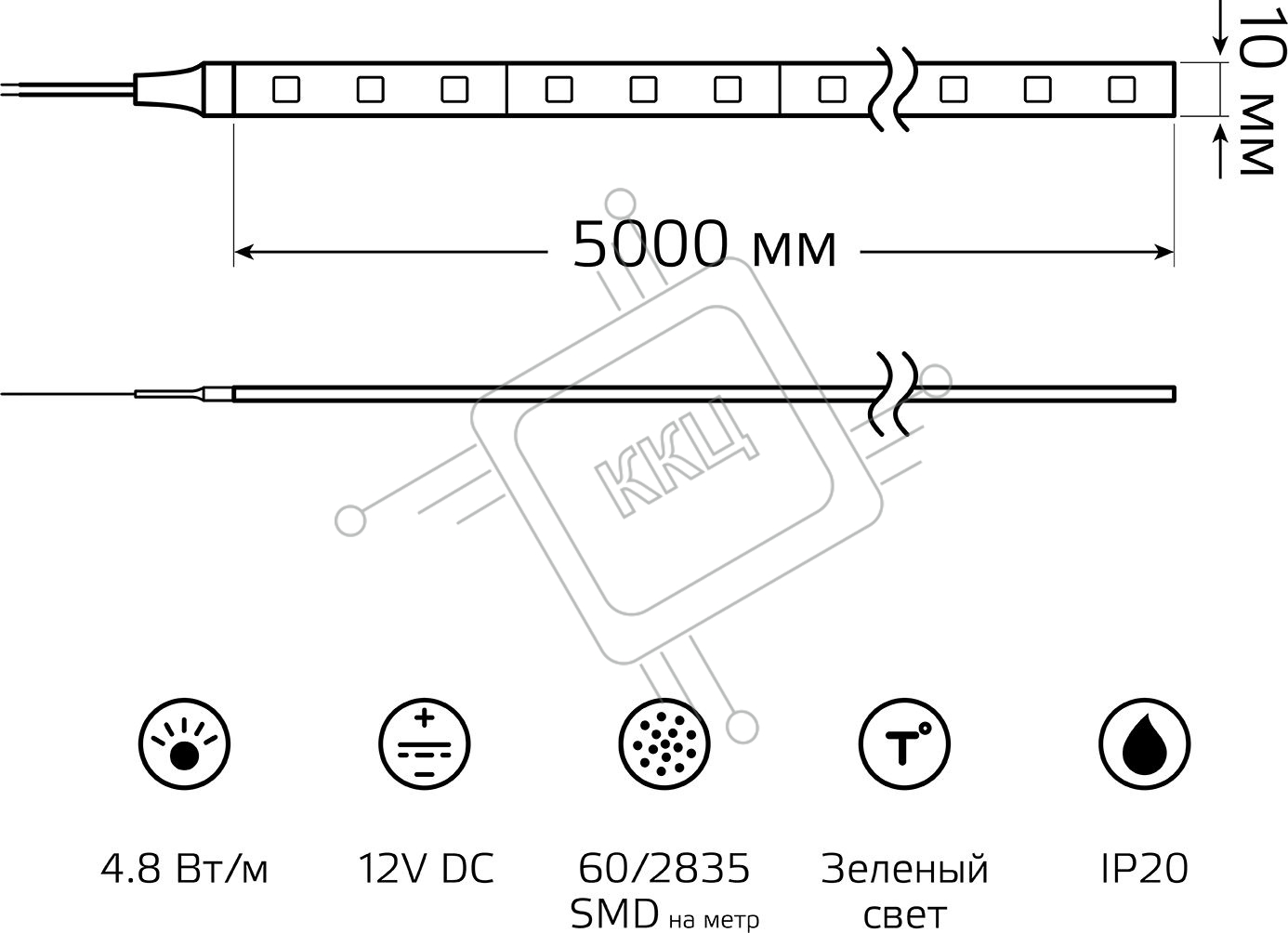 Лента светодиодная Elementary 2835 -SMD 4.8W 12V DC зеленый IP20 (ZIP Bag 5м)
