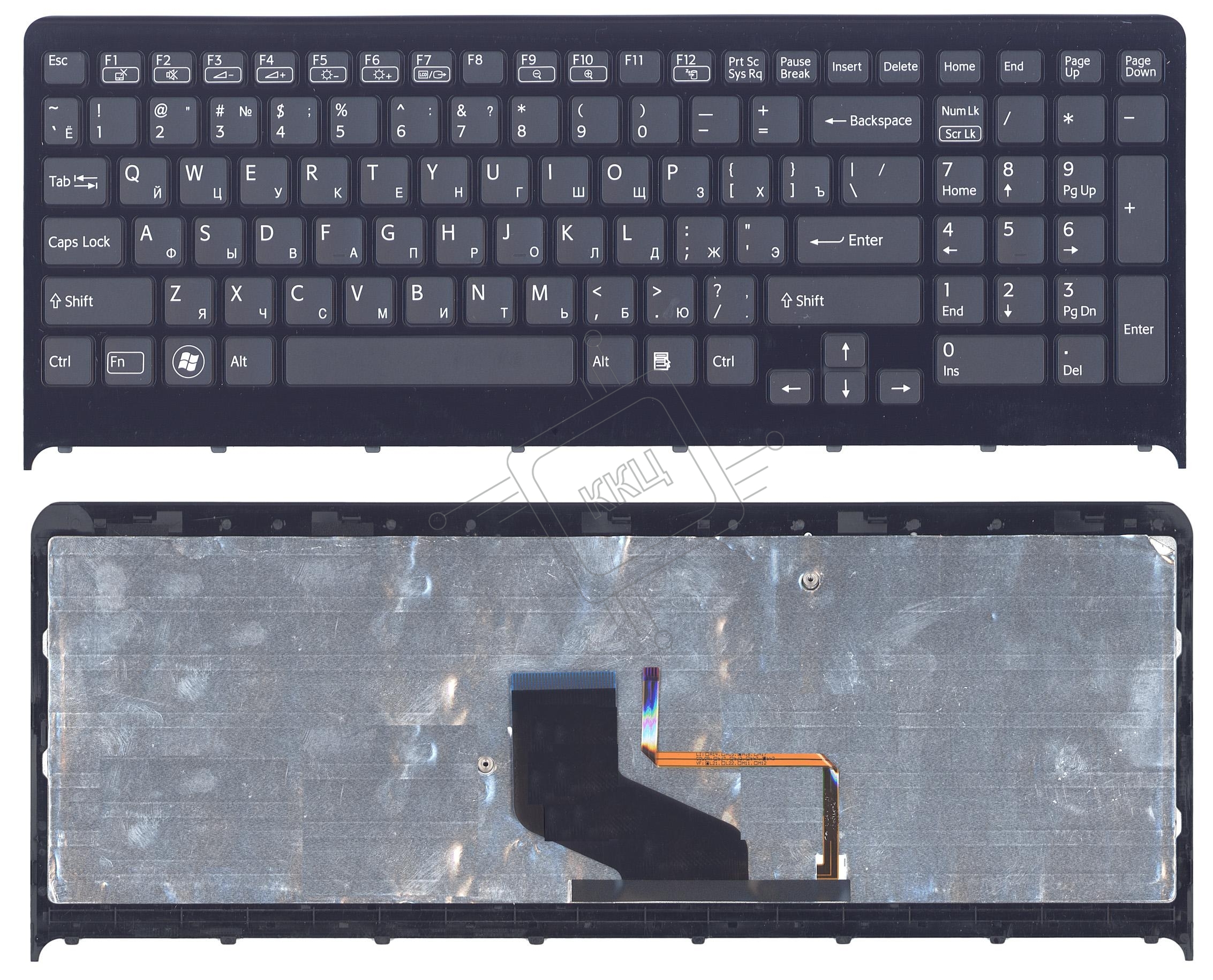 Клавиатура для ноутбука Sony Vaio VPC-F219fc черная с подсветкой с черной рамкой
