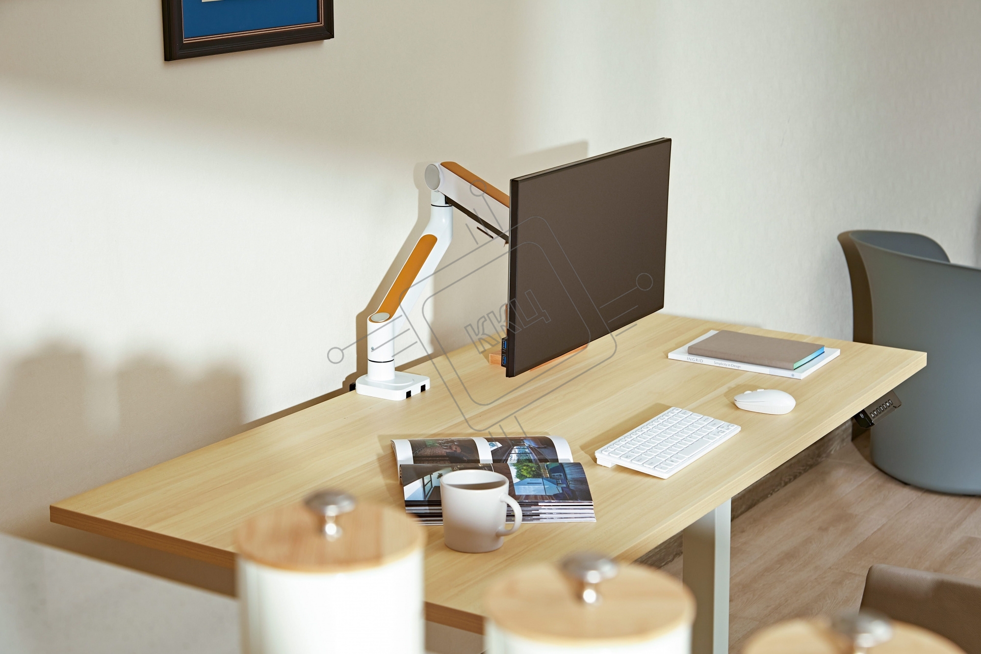 Кронштейн для мониторов Ultramounts UM732W белый/коричневый 17"-32" макс.8кг крепление к столешнице поворот и наклон