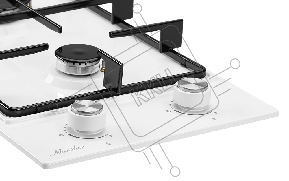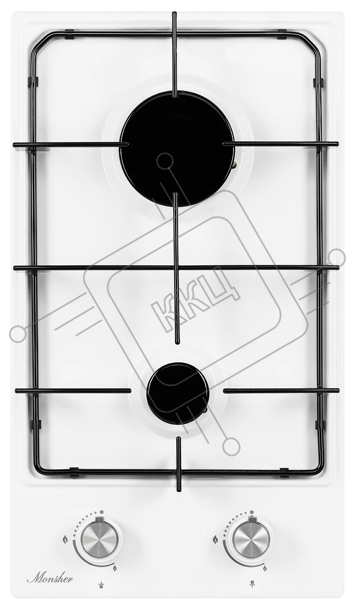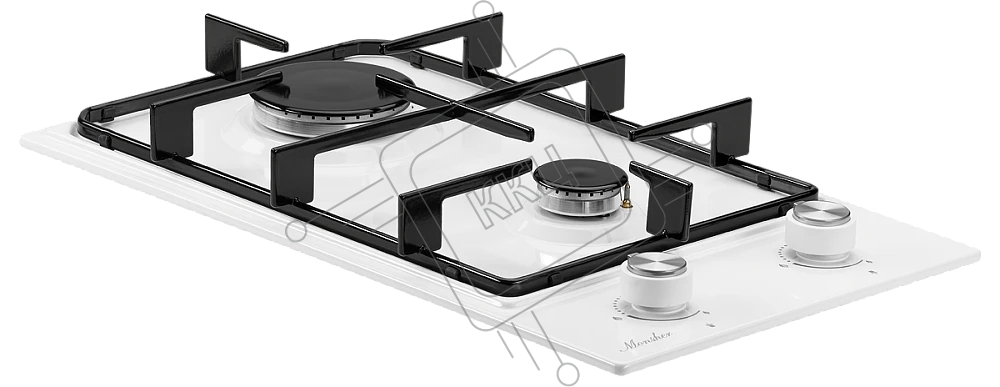Встраиваемые газовые панели домино MONSHER MSG 36 Blanc, ширина 30 см, 2 газовые конфорки, автоподжиг, газ-контроль, стальные решетки, цвет белый / эмаль ПРОМО
