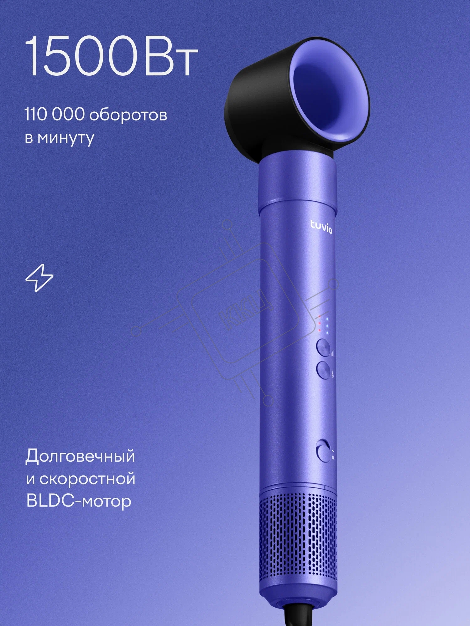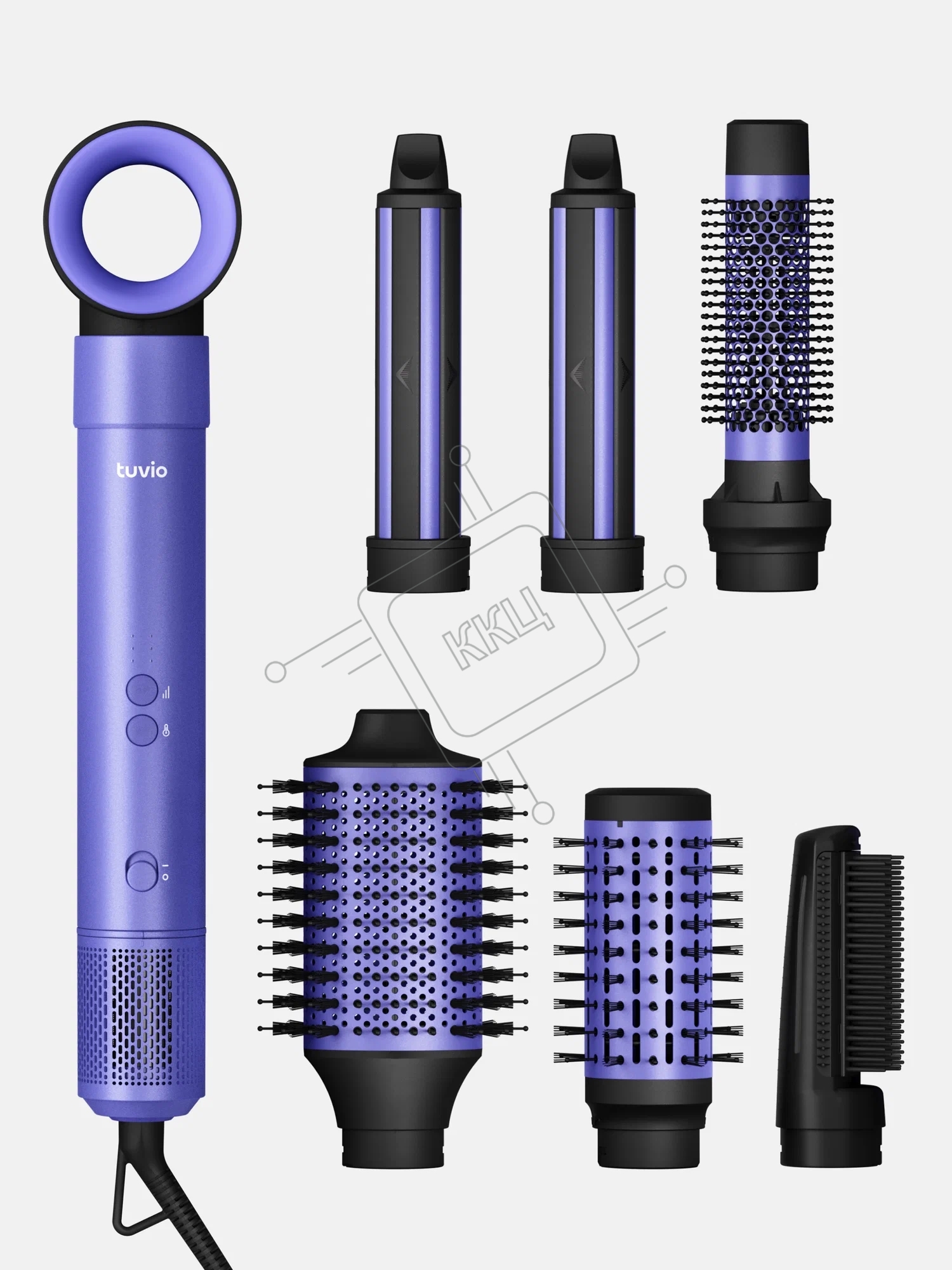 Фен-щётка с ионизацией Tuvio HBI1415, 7 насадок, фиолетовый