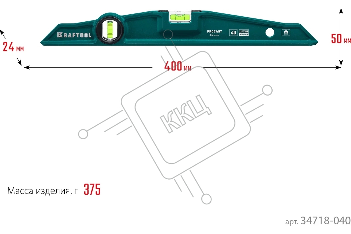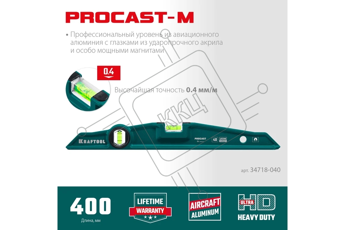 Магнитный литой уровень KRAFTOOL 400 мм PROCAST-M