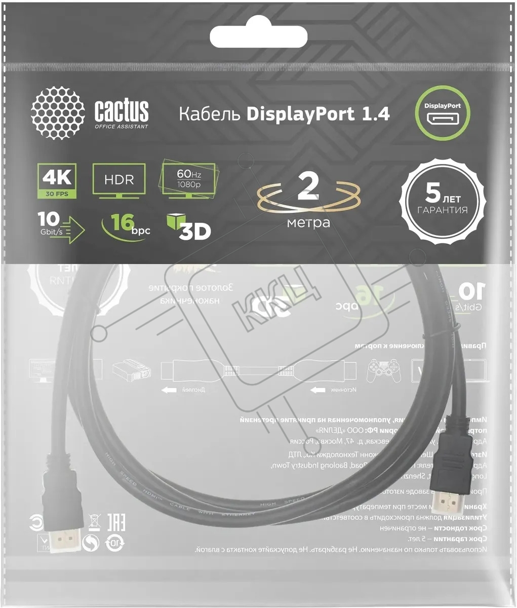 Кабель аудио-видео Cactus CS-DP-DP-1.4-2 DisplayPort (m)/DisplayPort (m) 2м. позолоч.конт. черный