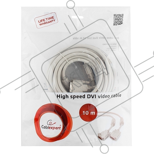 Кабель DVI-D dual link Gembird/Cablexpert CC-DVI2-10M, 25M/25M, 10м, экран, феррит.кольца, пакет