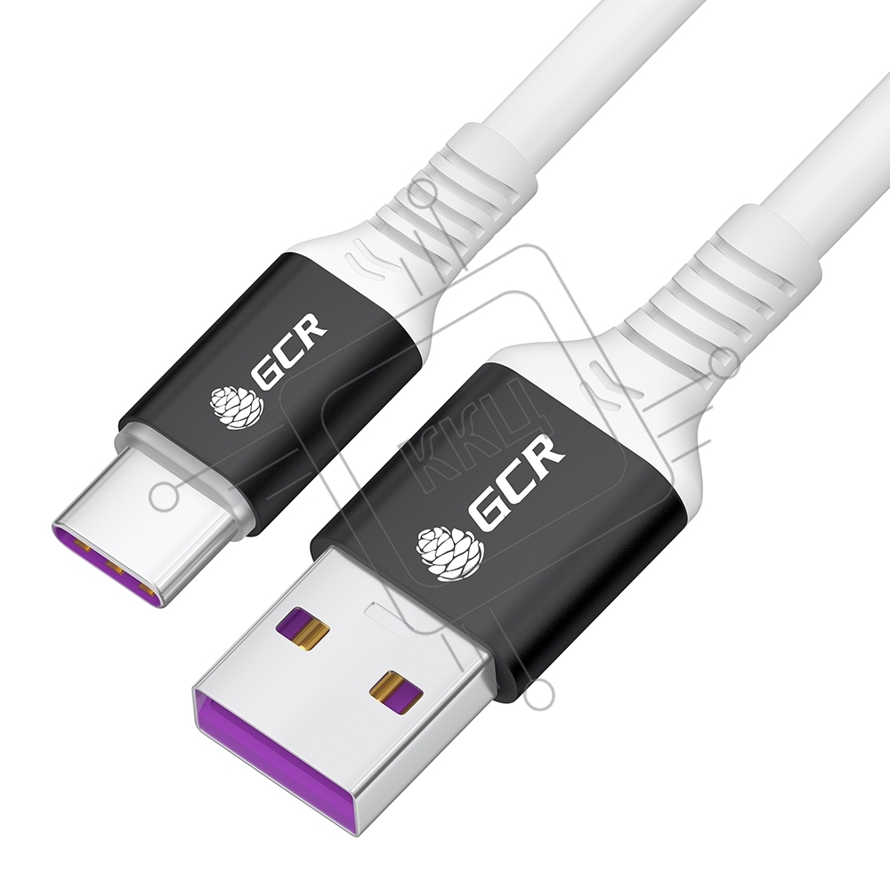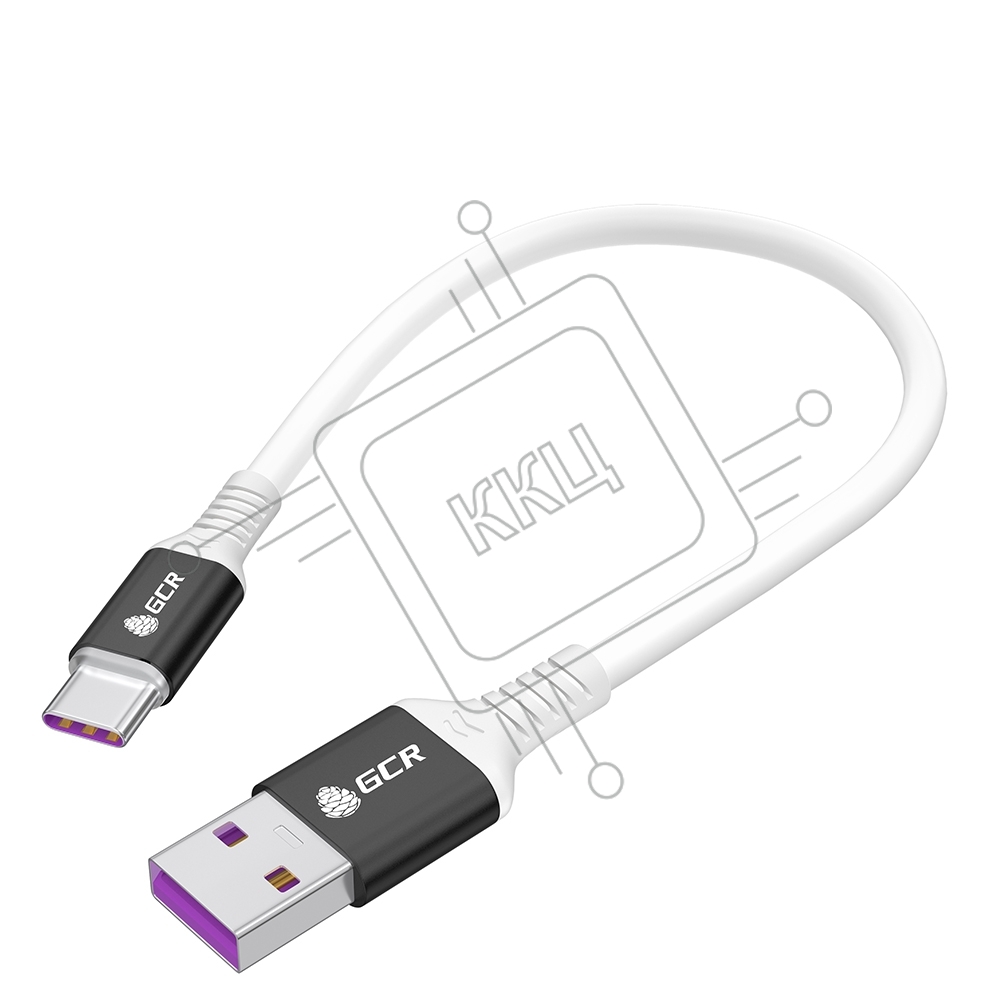 Кабель GCR 0.5m, TypeC POWER DELIVERY 60 W, 5A max, быстрая зарядка, белый TPE, AL case черный, белый ПВХ, 28/22 AWG, GCR-53655
