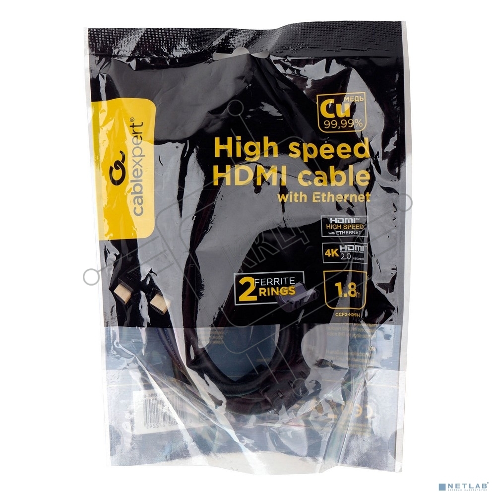 Кабель HDMI Cablexpert CCF2-HDMI4-6, 19M/19M, v2.0, медь, позол.разъемы, экран, 2 фер.кольца, 1,8м, черный, пакет